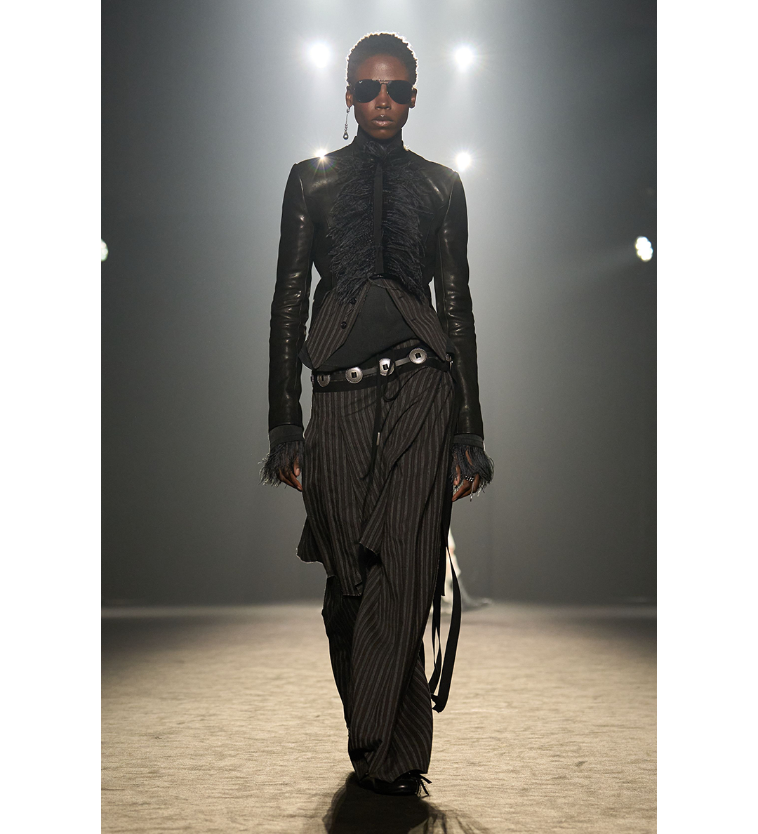 ANN DEMEULEMEESTER BETS HIGH NECK COLLAR WITH FRISEE FEATHERS BLACK