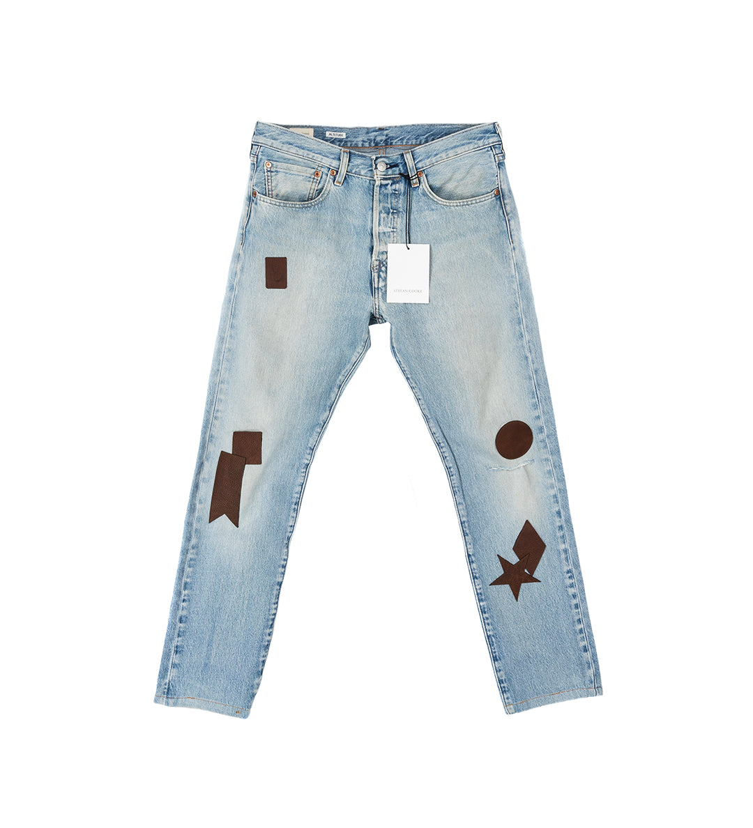 STEFAN COOKE BROWN PATCH VINTAGE BLUE JEANS BLUE/BROWN