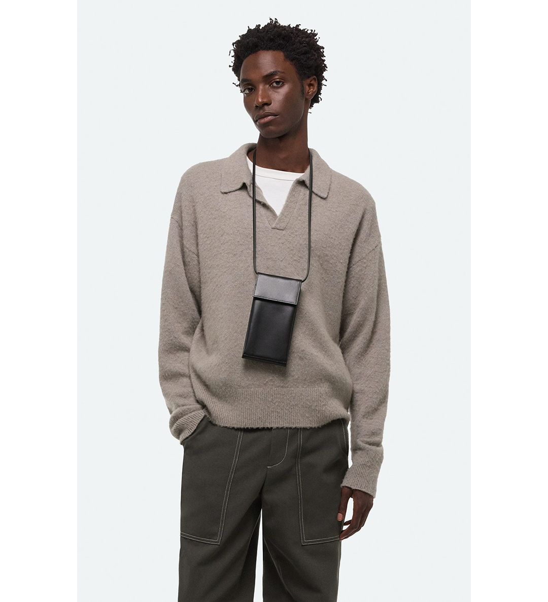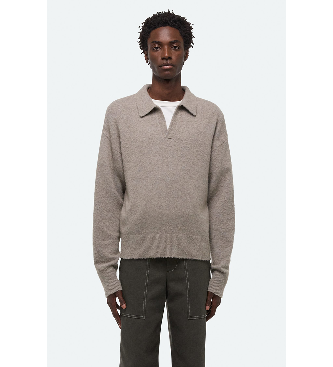HELMUT LANG BRUSHED POLO SWEATER FOG