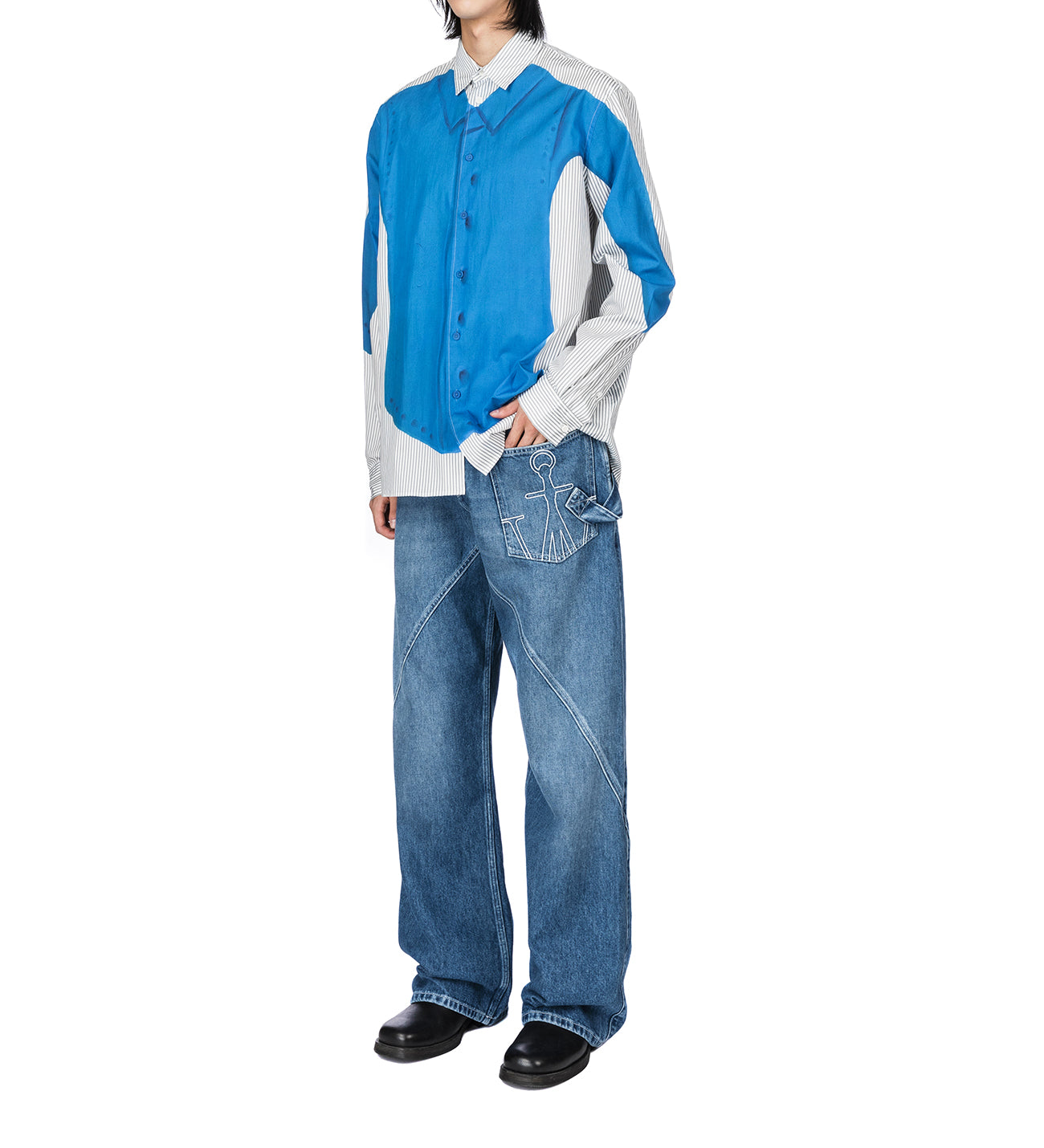 J.W.ANDERSON CLAY TROMPE L'OEIL PRINT SHIRT LIGHT GREY/BLUE