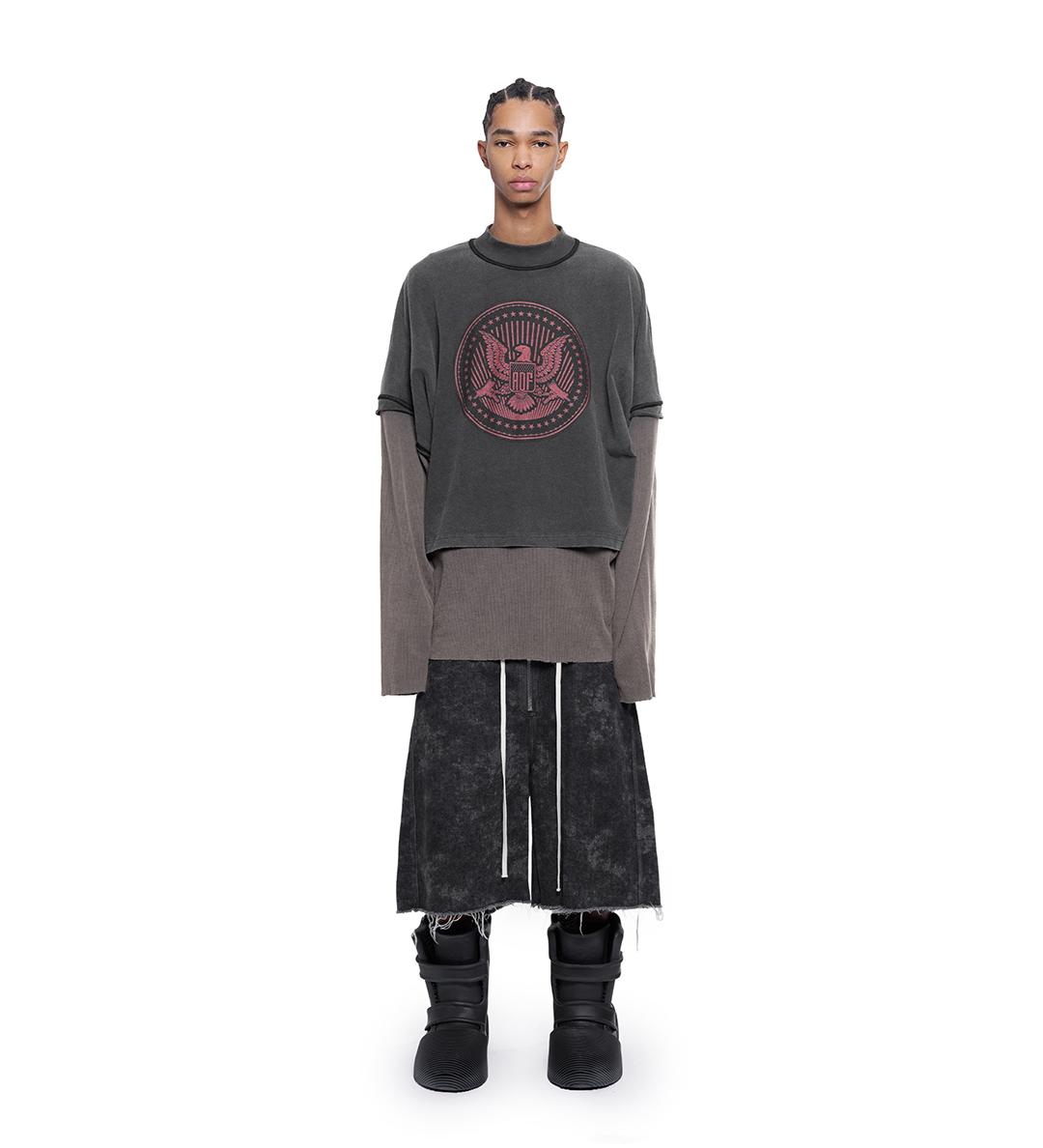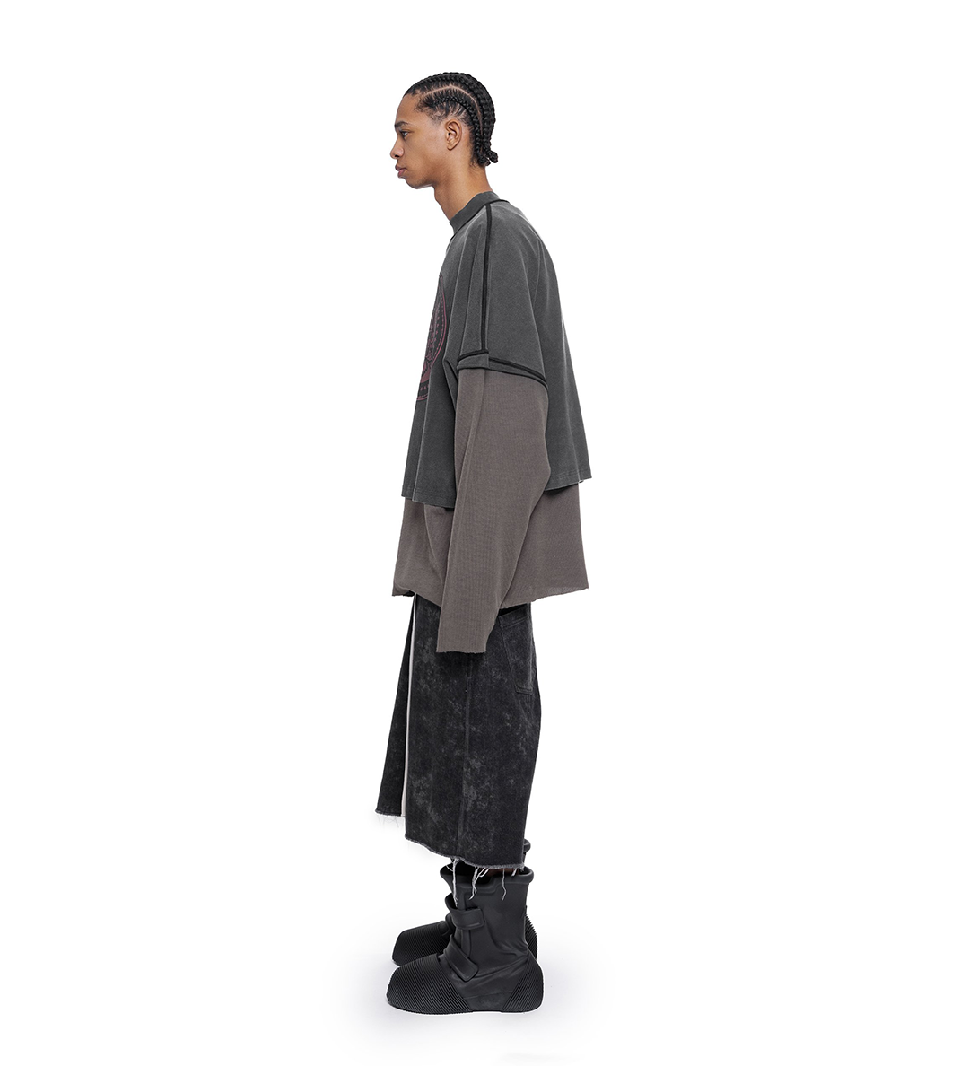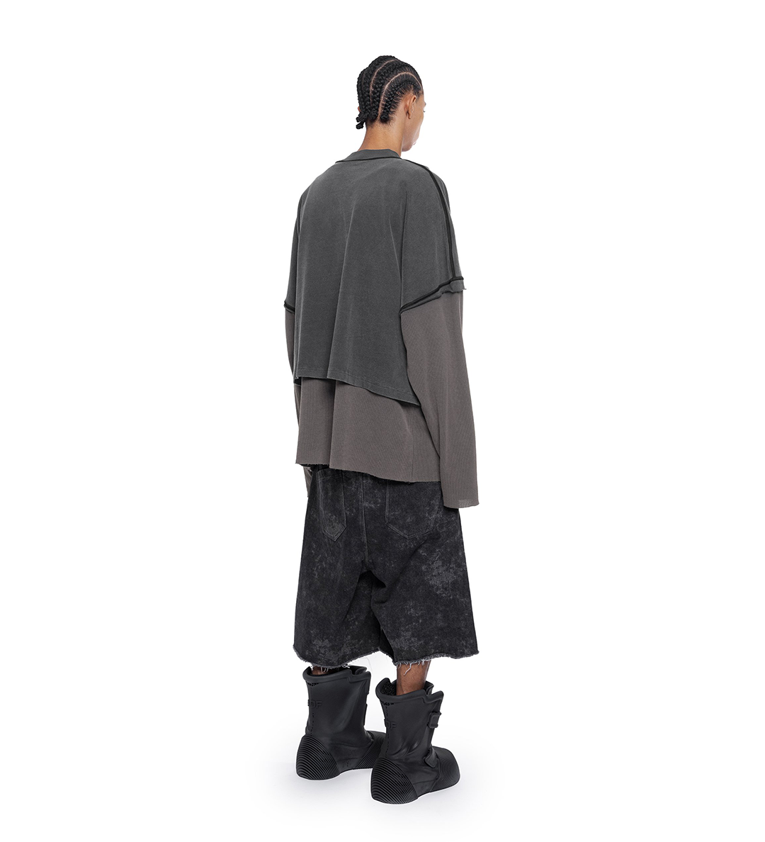 CREWNECK TEE OVERLAPPED WASHED BLACK CHARCOAL