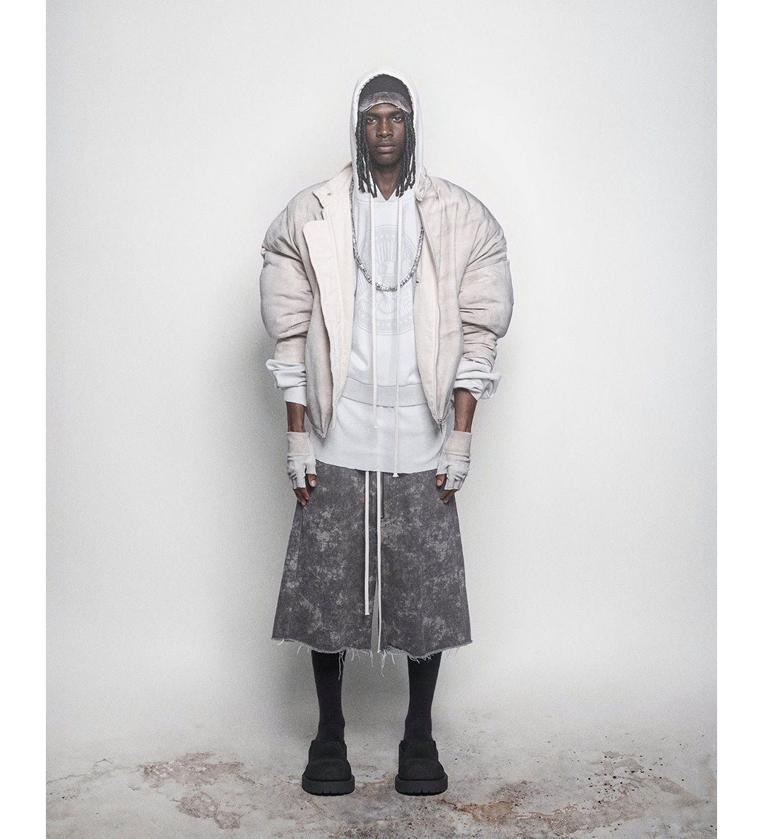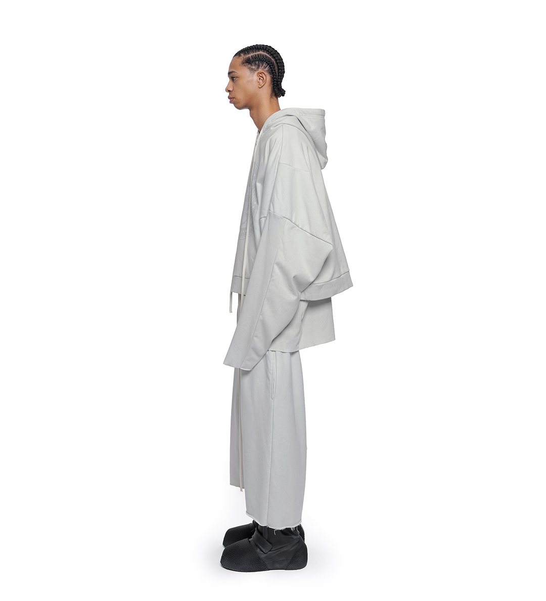 CROPPED HOODIE OVERLAPPED DUSTY WHITE