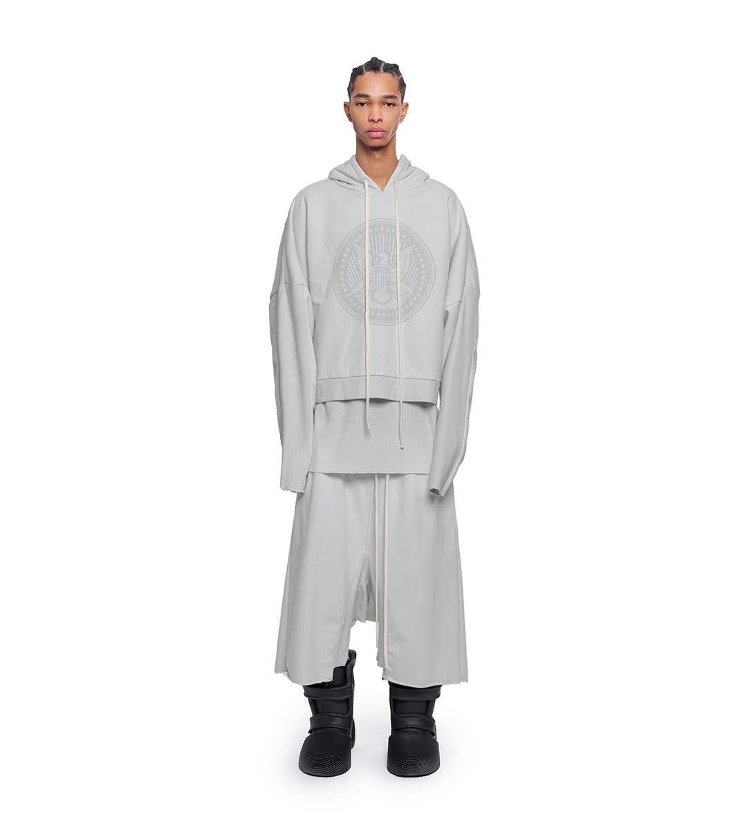 ARNODEFRANCE CROPPED HOODIE OVERLAPPED DUSTY WHITE