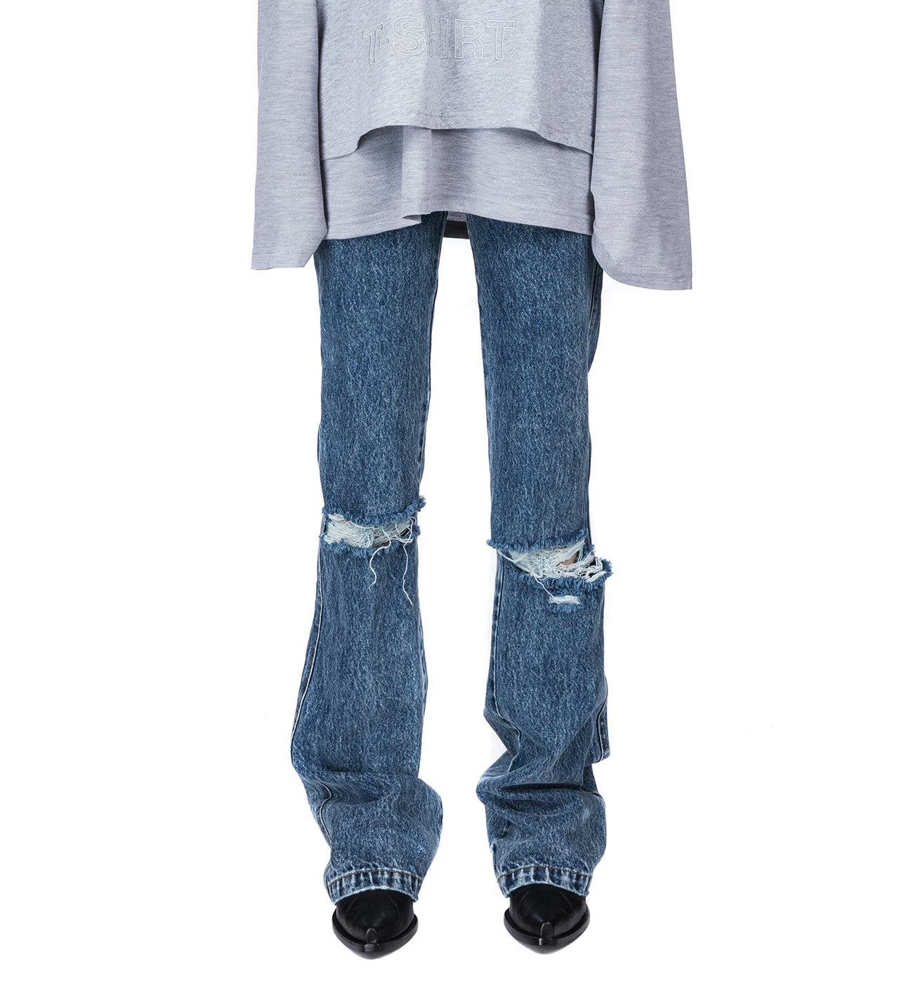 DISTRESSED KNEES FLARED JEANS DARK WASH