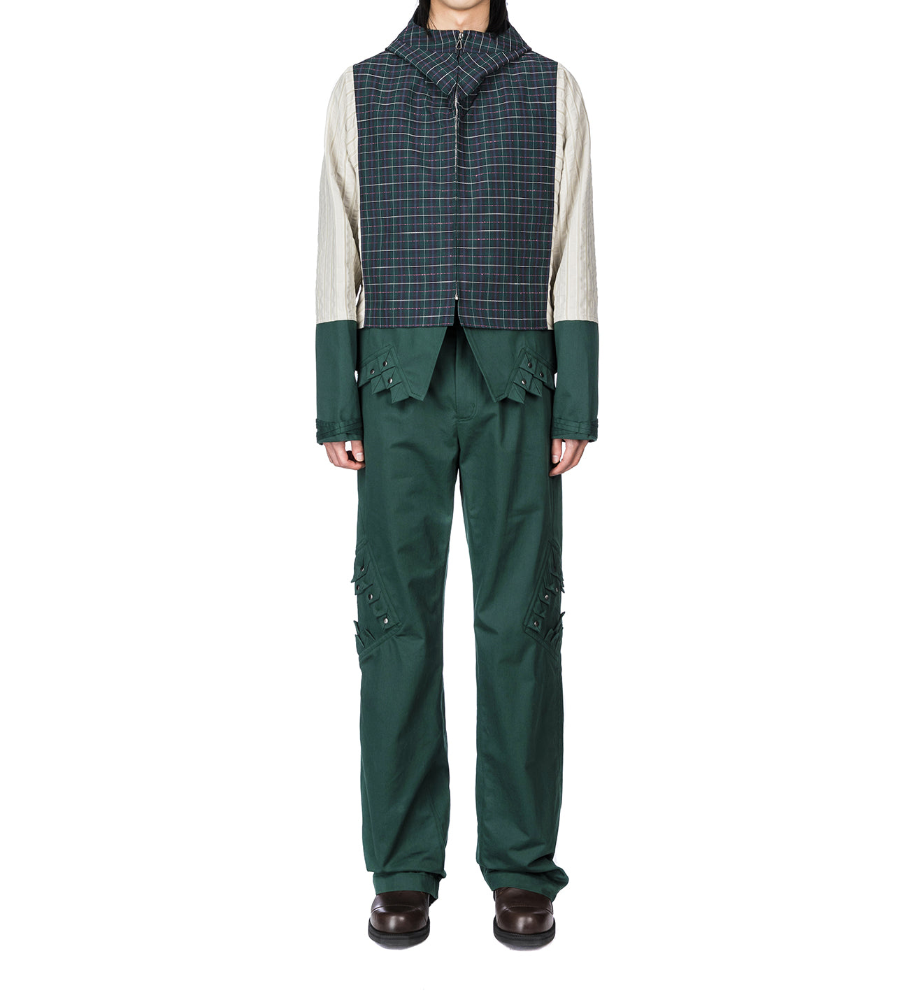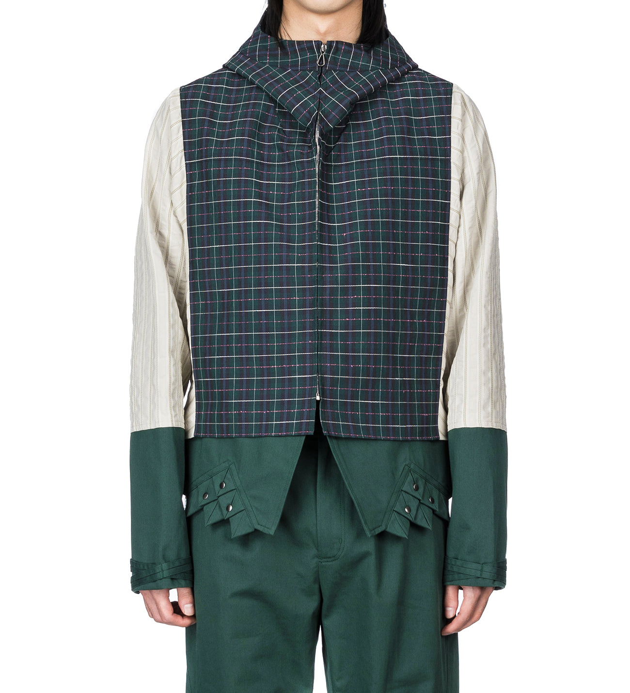KIKO KOSTADINOV ESTIKE HOODED JACKET FOREST CHECK/IVORY STRIPE