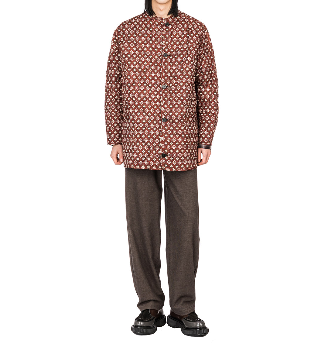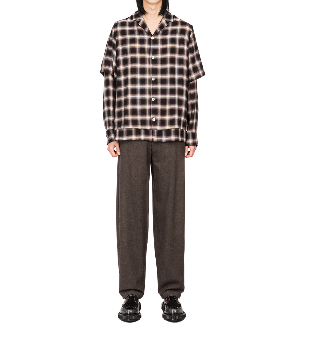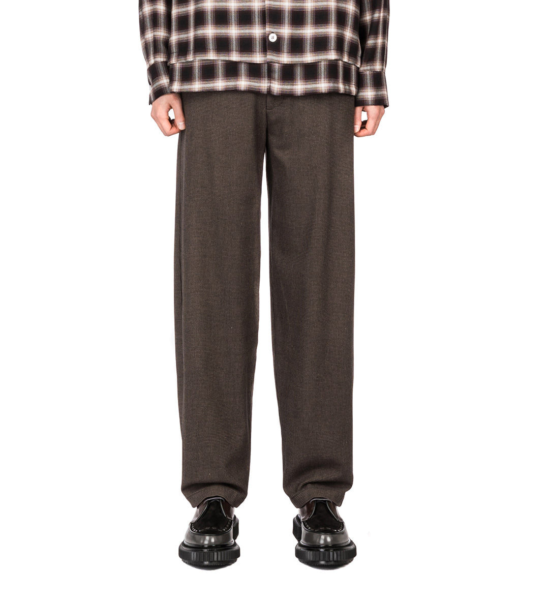 GOODFIGHT FLORIDER TROUSERS BRUSHED CHECK BROWN HERRINGBONE