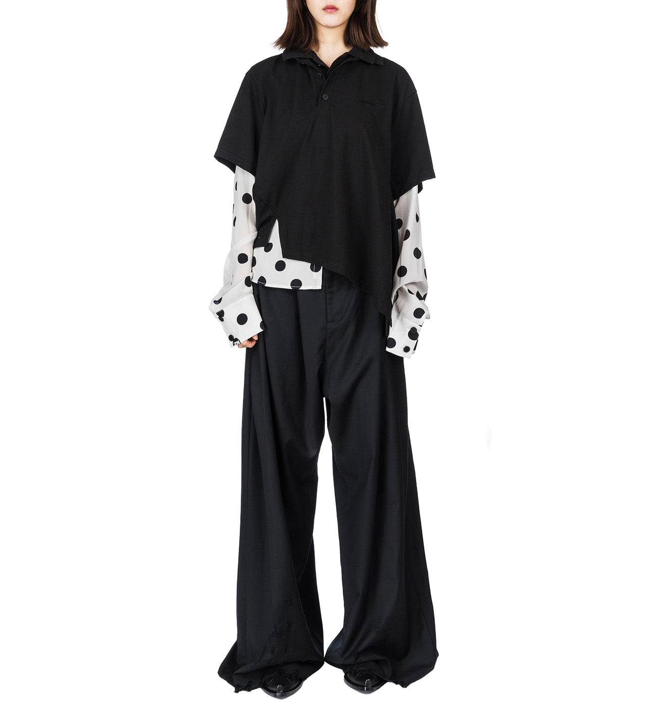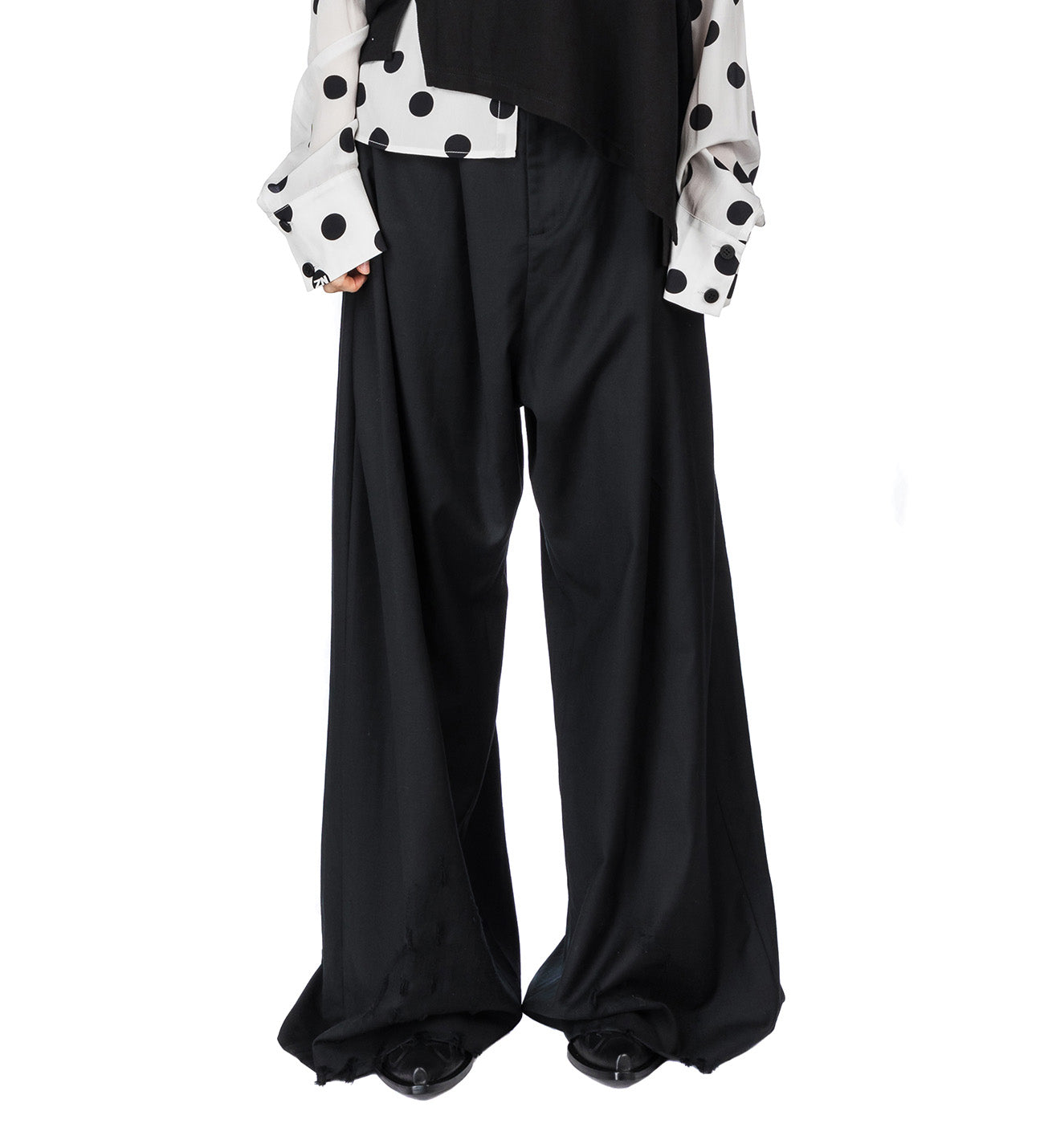 NATASHA ZINKO FOLDED WOOL TROUSERS BLACK