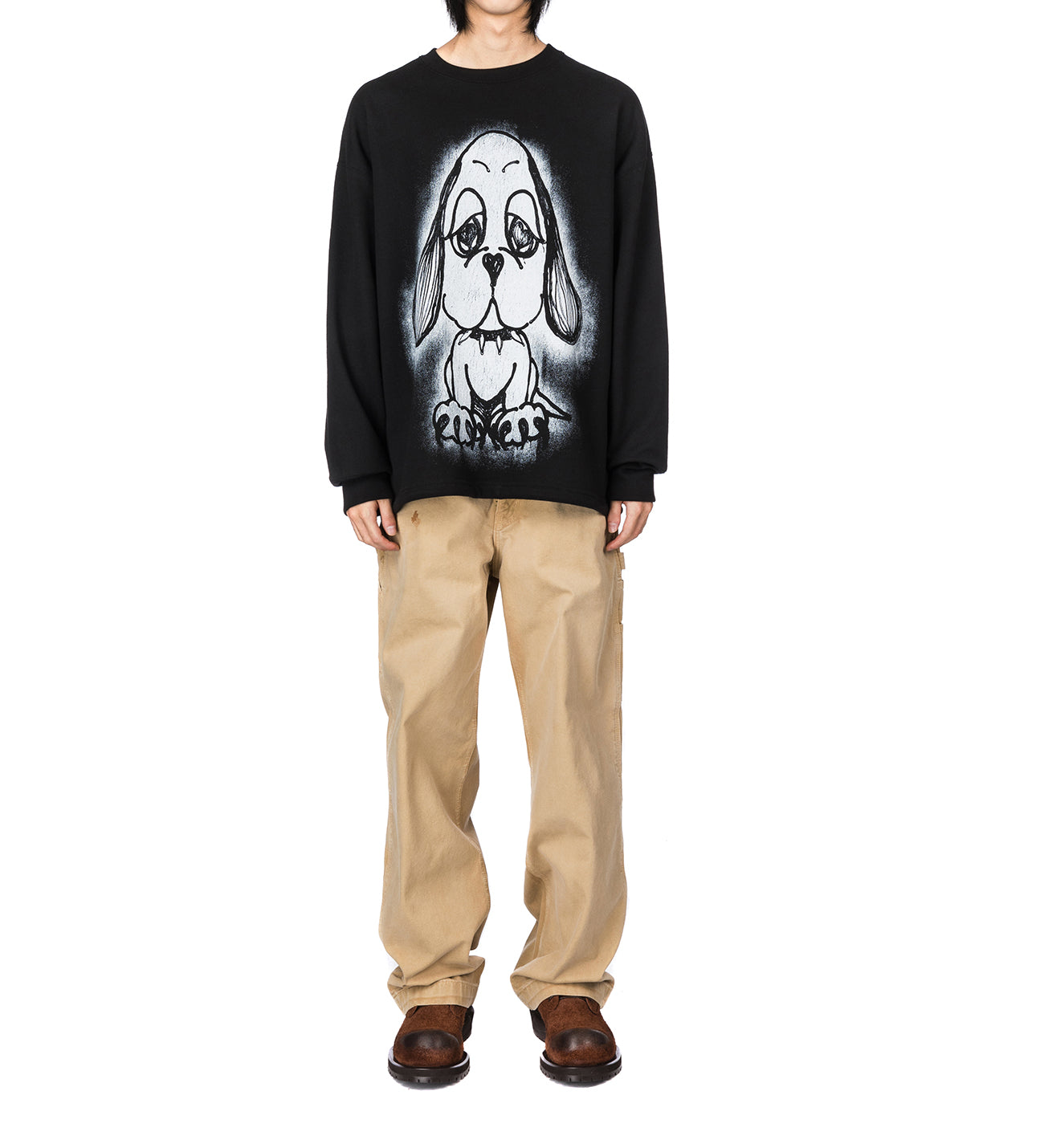 CHITO HEART PUP DRAWSTRING CREW BLACK
