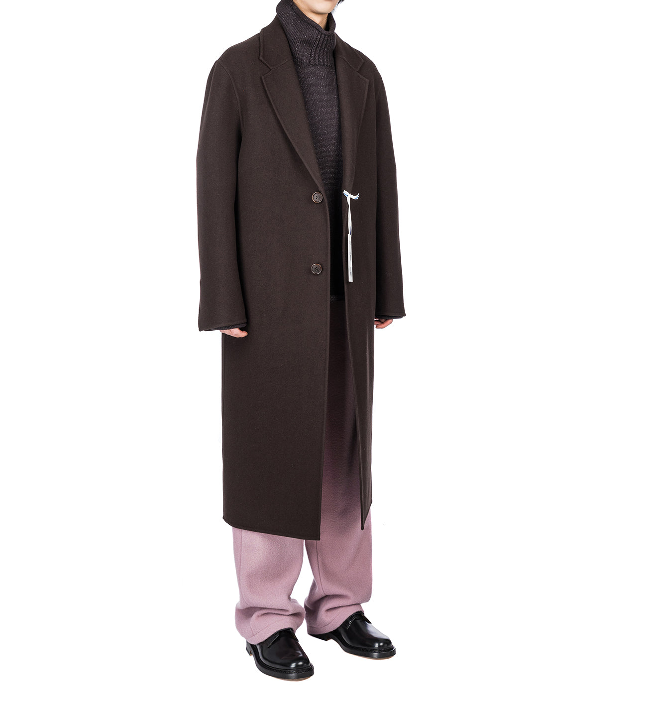 META CAMPANIA COLLECTIVE HUGO LONG SB BOILED WOOL COAT-DARK CHOCOLATE BROWN