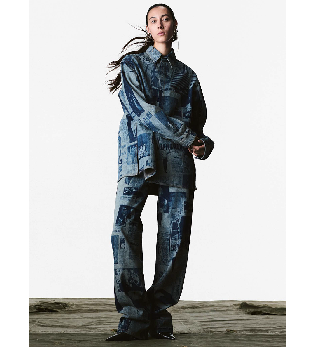 JEAN PAUL GAULTIER JEANS WITH NEWSPAPER PRINT INDIGO/BEIGE