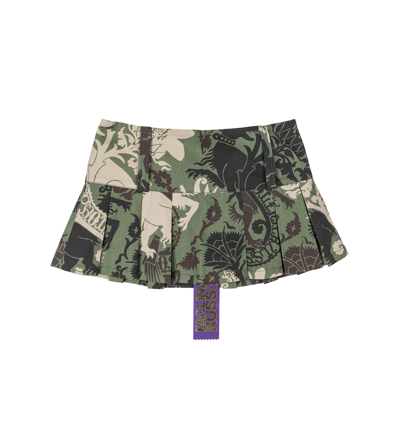 PAOLINA RUSSO MEDIEVAL CAMO MINI SKIRT KHAKI/GREEN