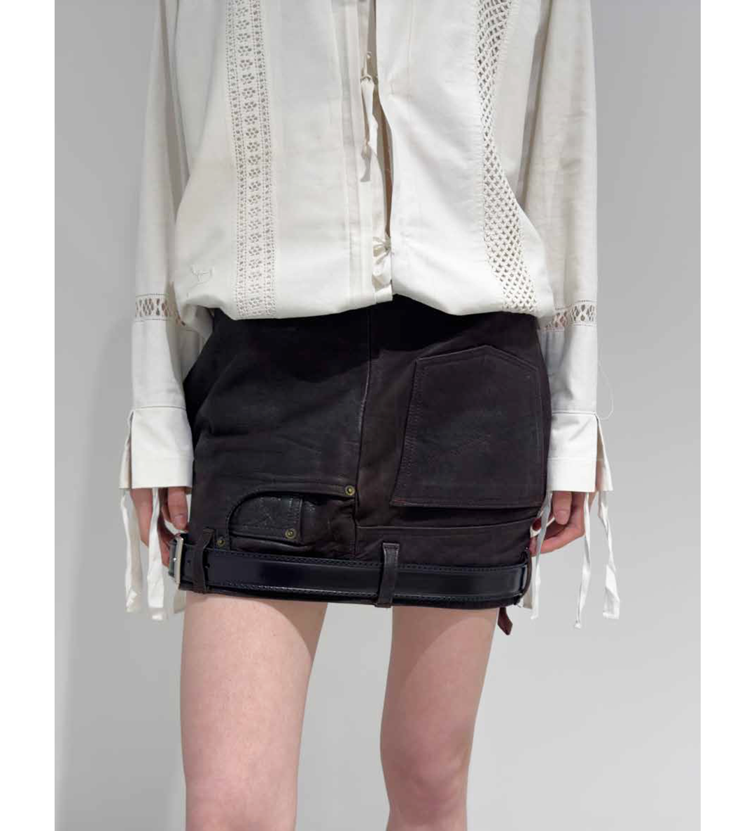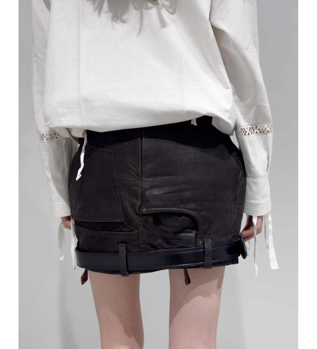 HODAKOVA MINI LEATHER SKIRT BROWN