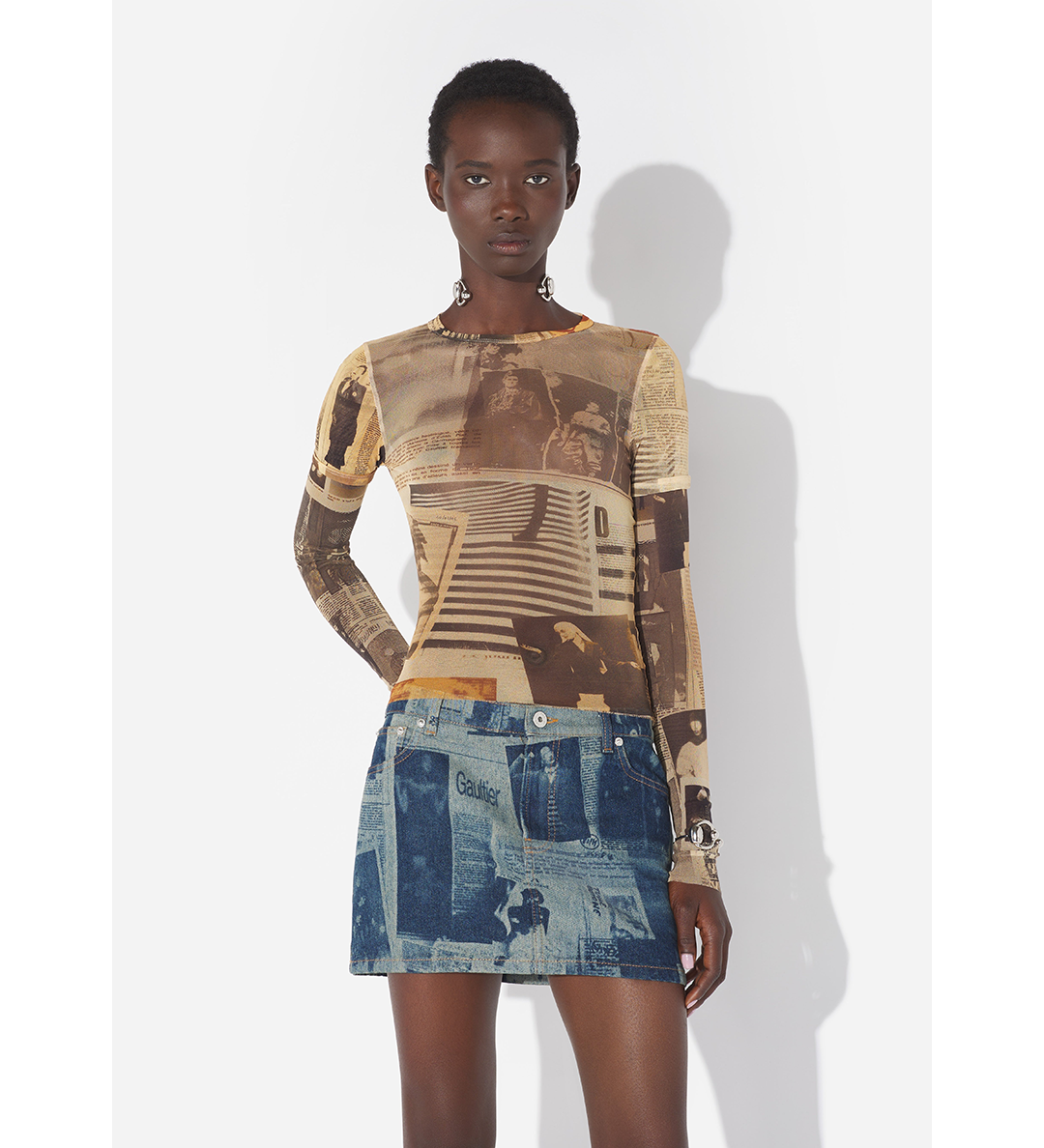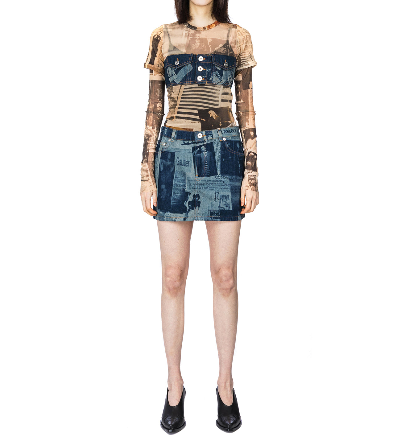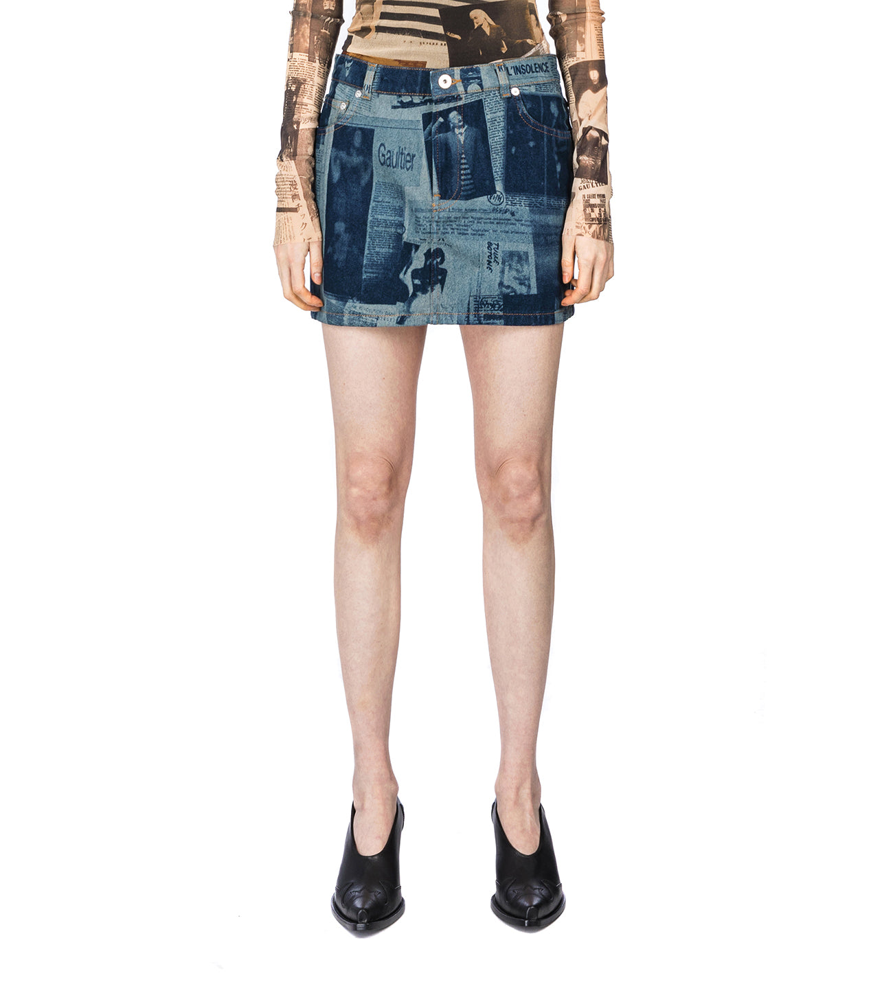 JEAN PAUL GAULTIER MINI SKIRT WITH NEWSPAPER PRINT INDIGO/BEIGE