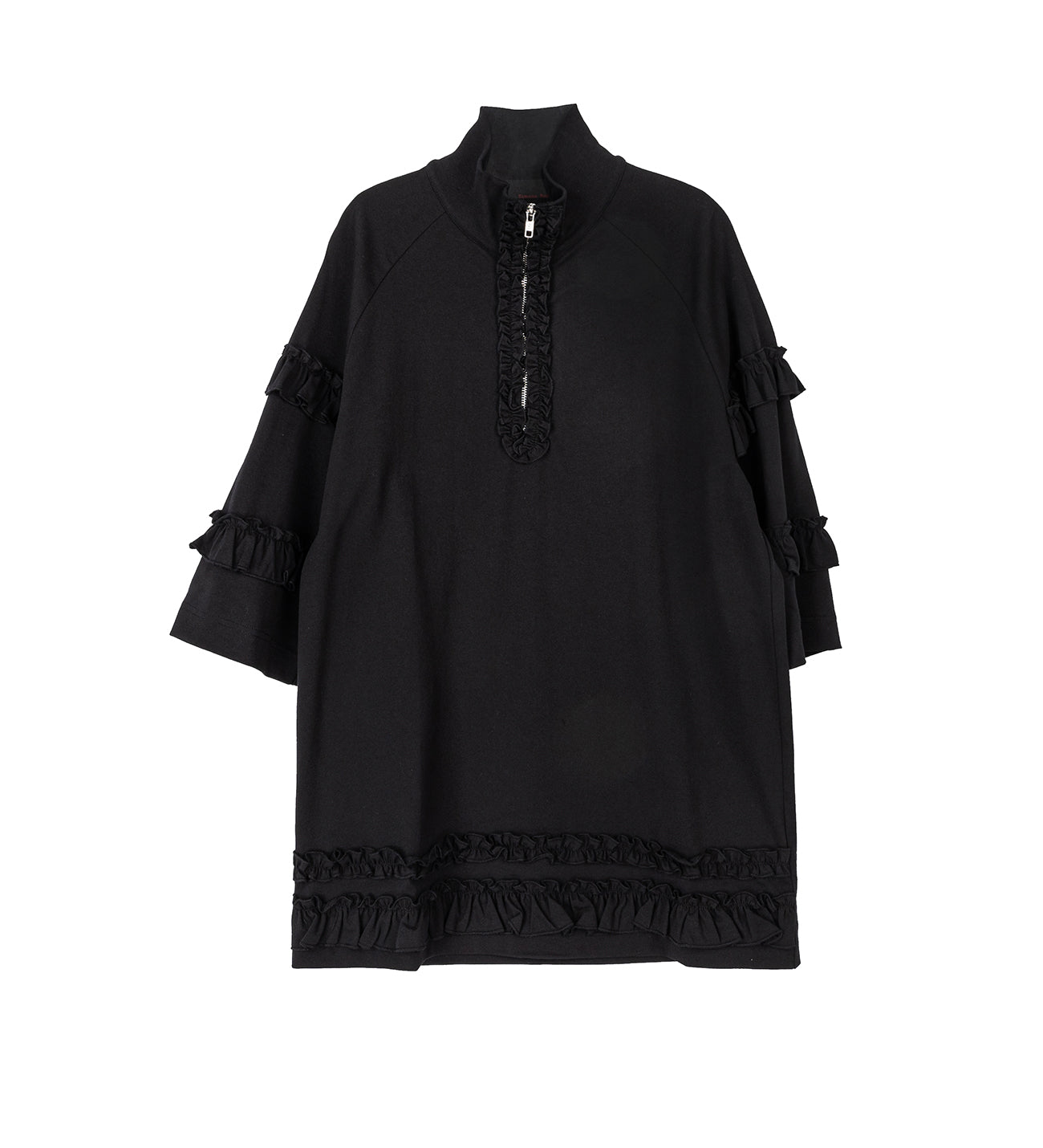 MOCK NECK RUFFLE FRILL ZIP T-SHIRT