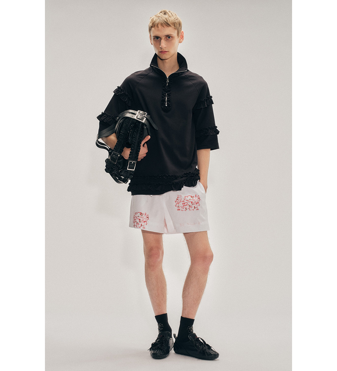 SIMONE ROCHA MOCK NECK RUFFLE FRILL ZIP T-SHIRT