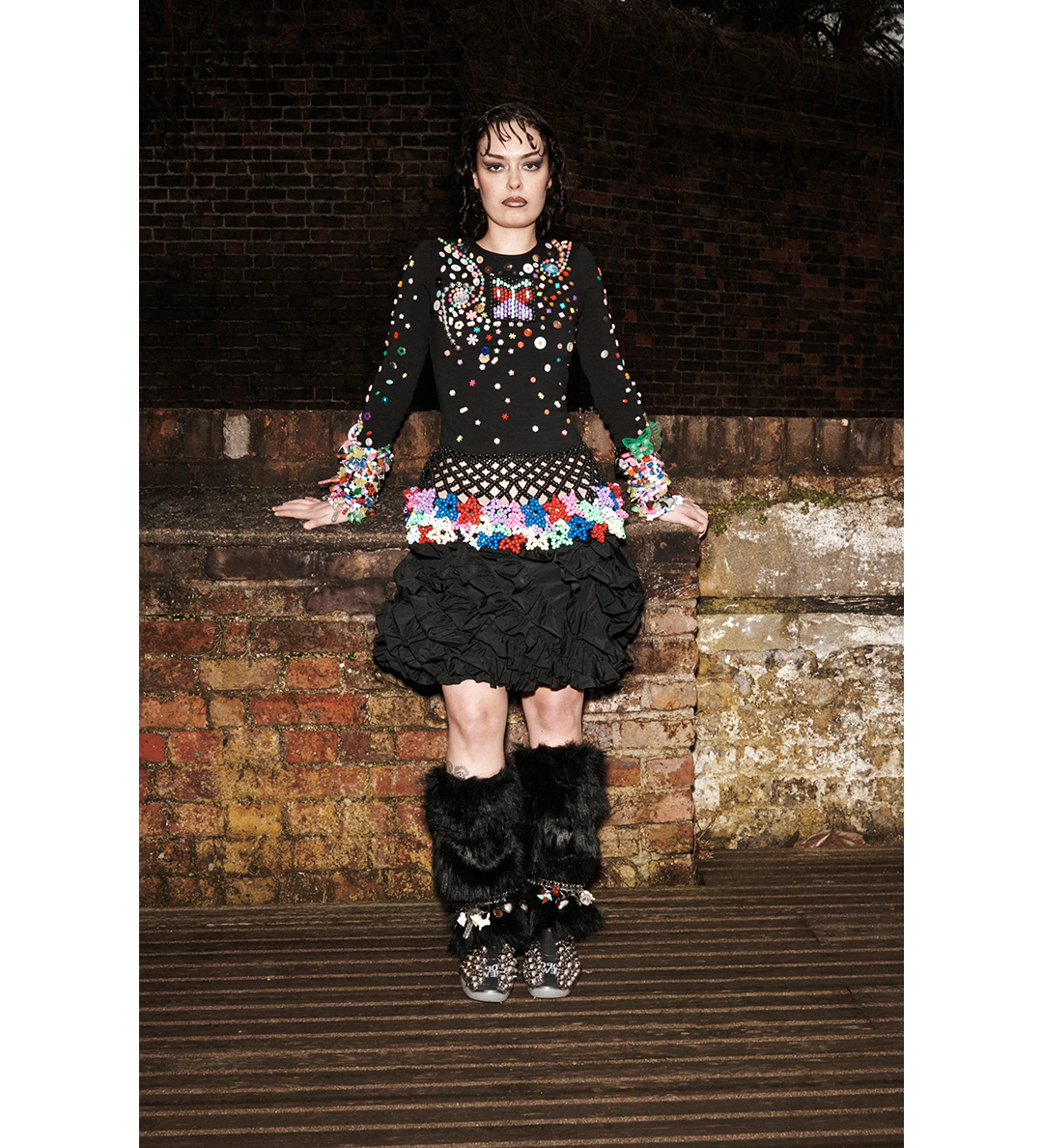 NIGHT DEFUNCT BEADED JERSEY TOP BLACK