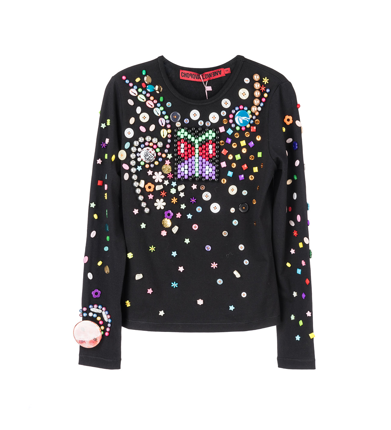 CHOPOVA LOWENA NIGHT DEFUNCT BEADED JERSEY TOP BLACK