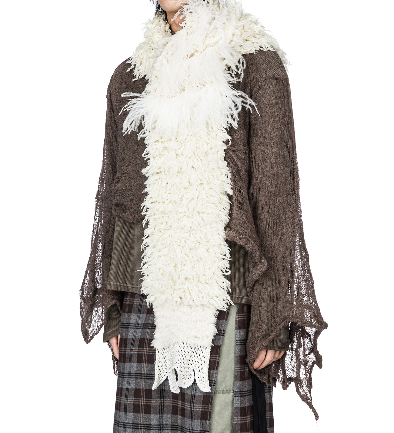 OFKE KNIT SCARF WITH FEATHERS NATURAL WHITE