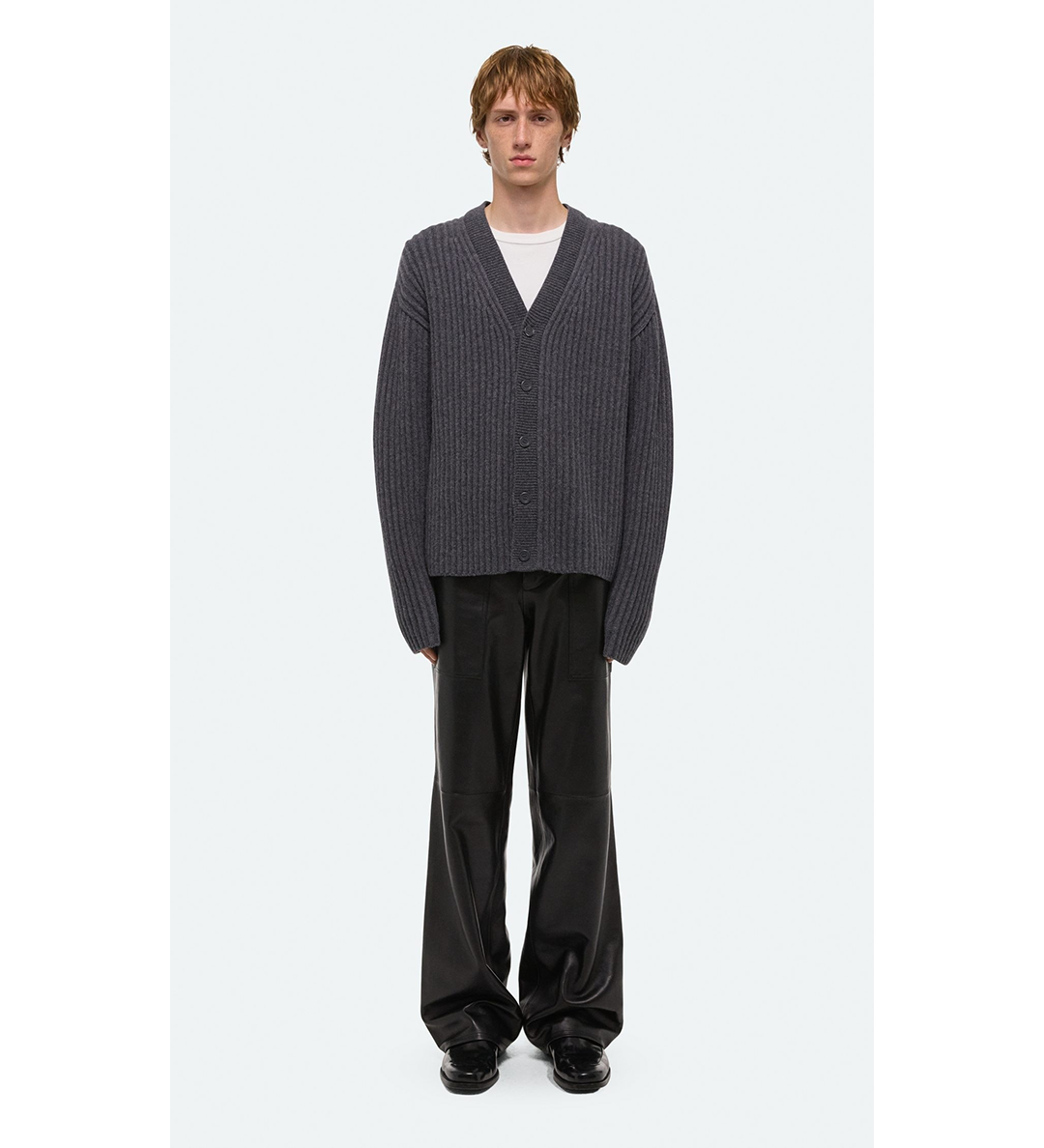 HELMUT LANG RIBBED CARDIGAN CHARCOAL