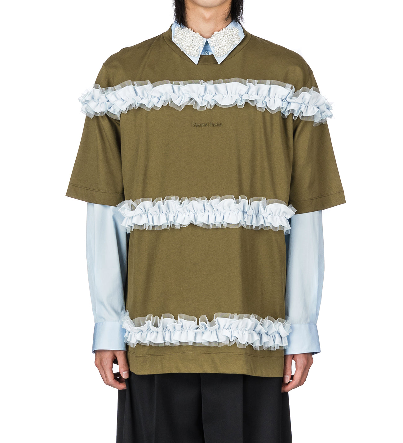 SIMONE ROCHA RUFFLE FRILL T-SHIRT KHAKI/PALE BLUE