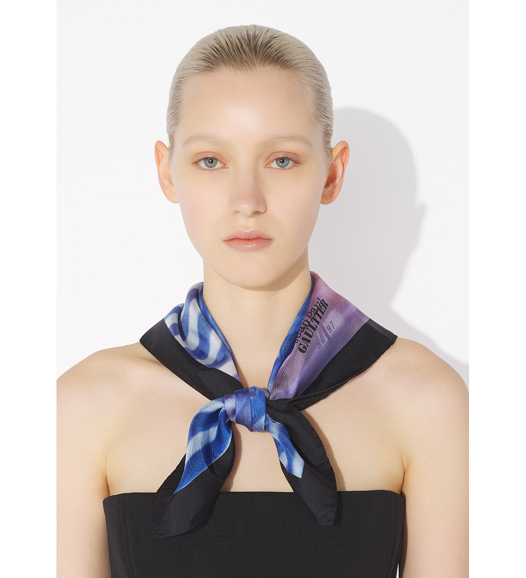 JEAN PAUL GAULTIER SILK SCARF AIR PRINT LIGHT BLUE/BLUE/PEACH
