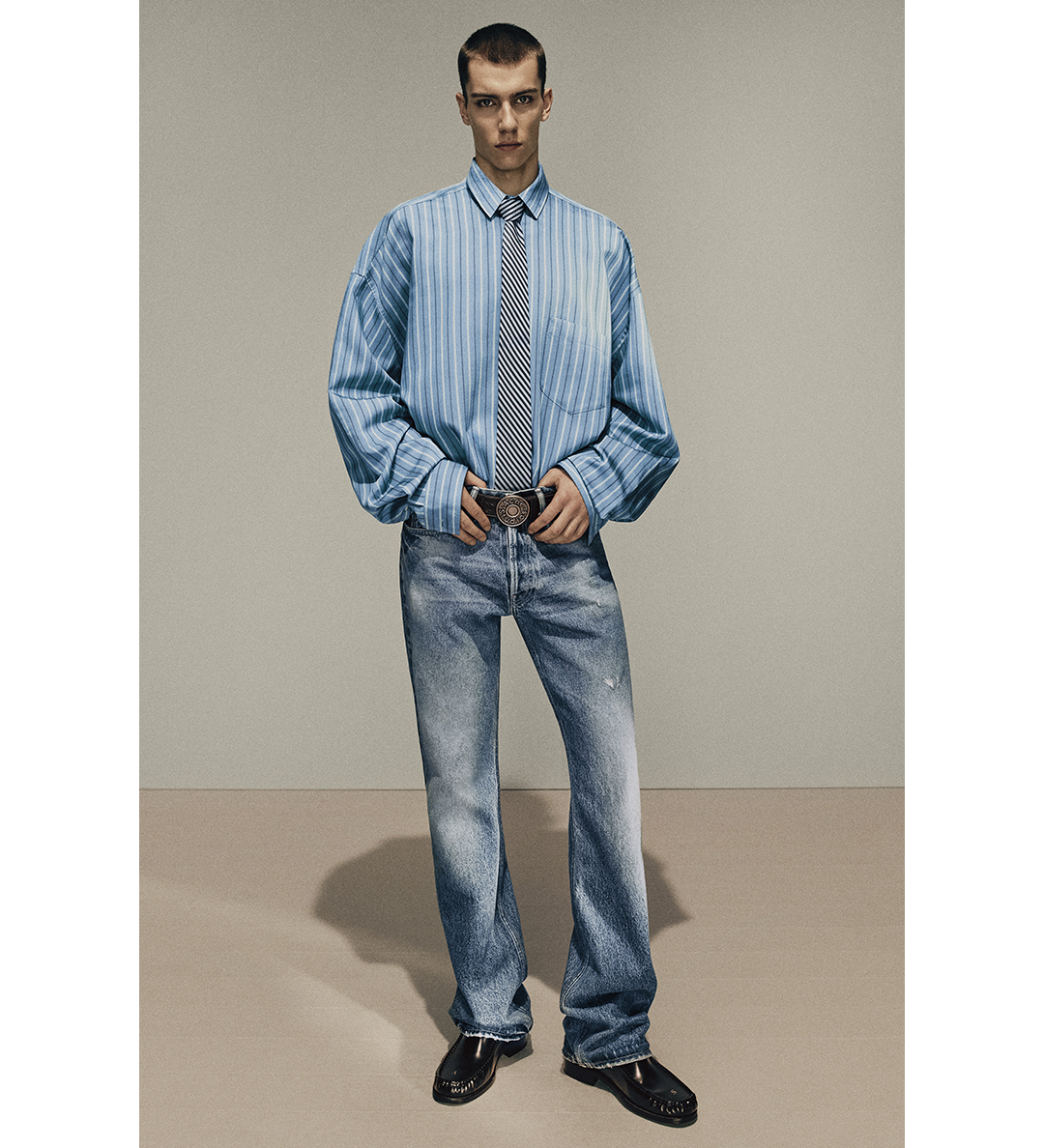 ACNE STUDIOS SOFFIA ROUND SHIRTING BLEND BLUE MULTI