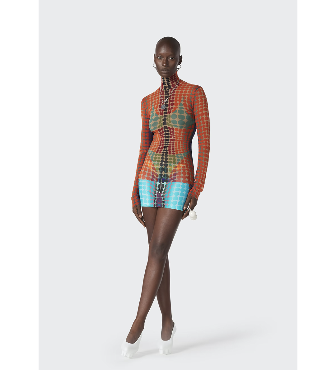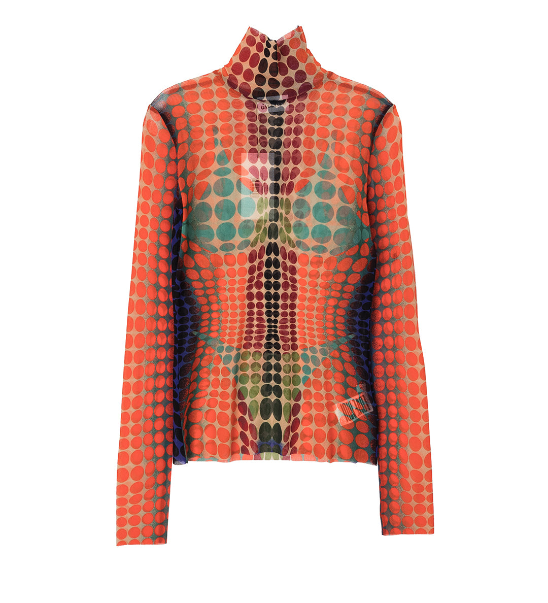 JEAN PAUL GAULTIER THE ORANGE DOTS PRINT MESH TOP