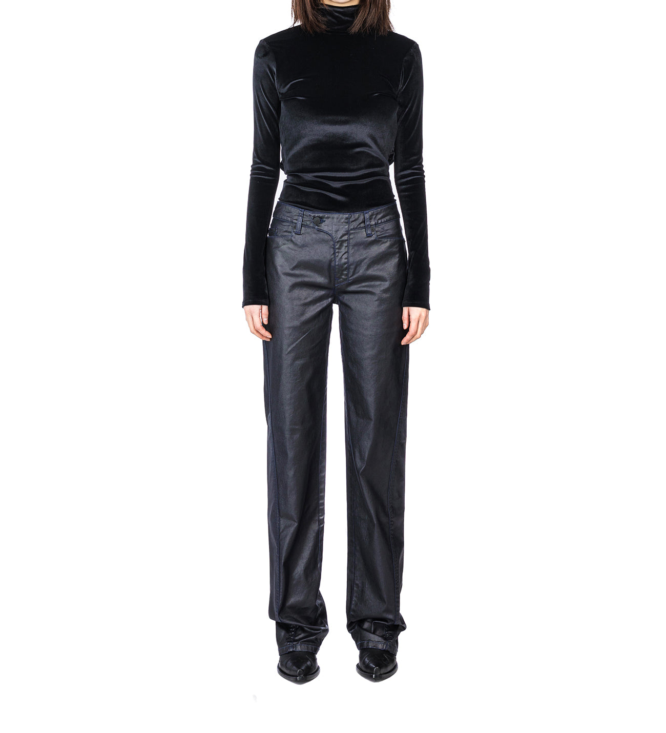 MUGLER WAXED STRAIGHT LEG JEANS MIDNIGHT BLUE / BLACK