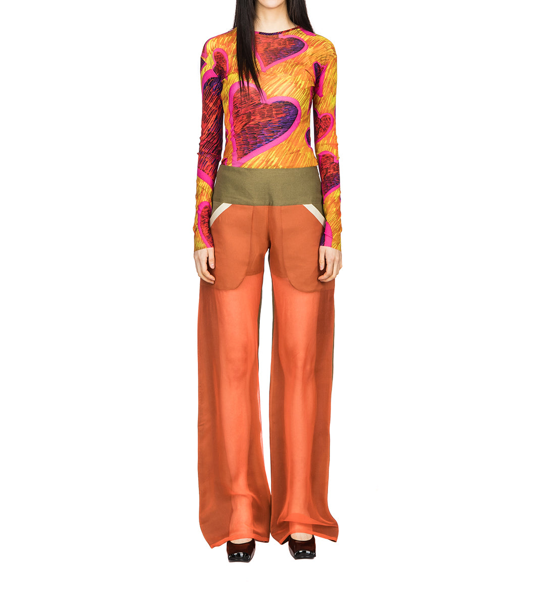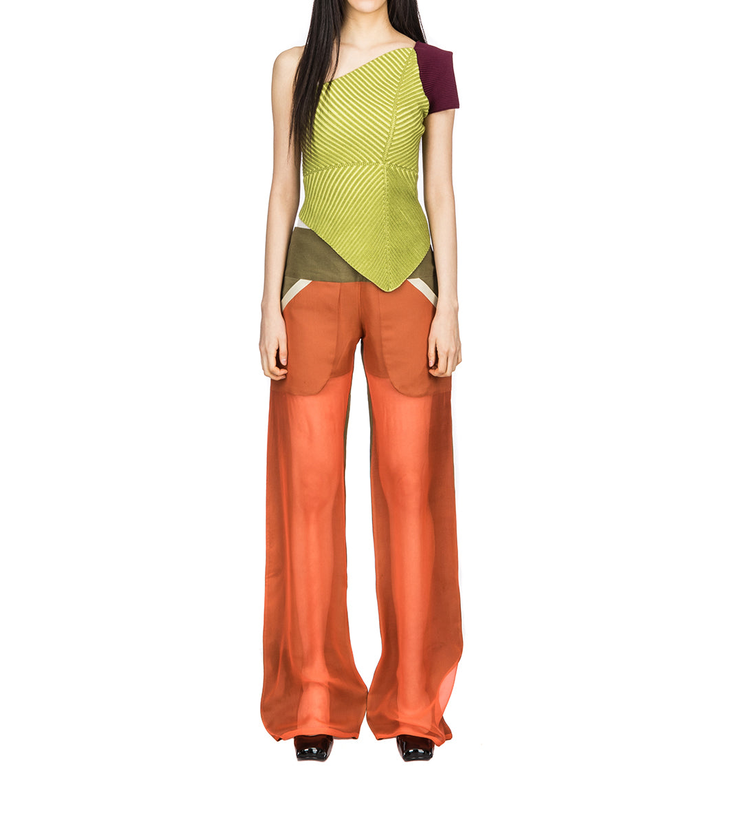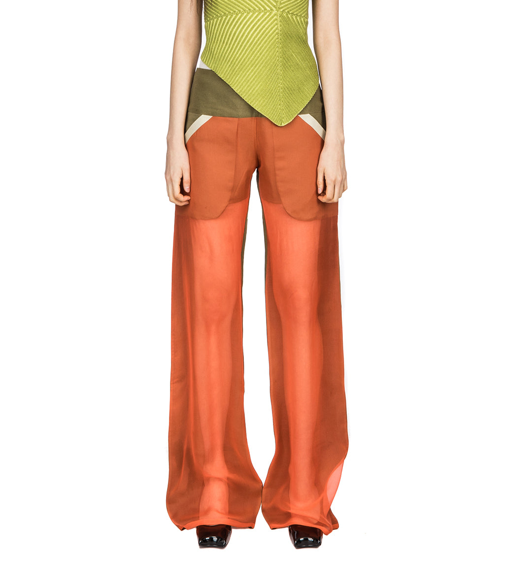 PAULA CANOVAS DEL VAS ARC CHIFFON TROUSERS KHAKI & ORANGE