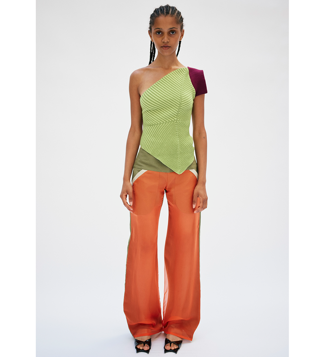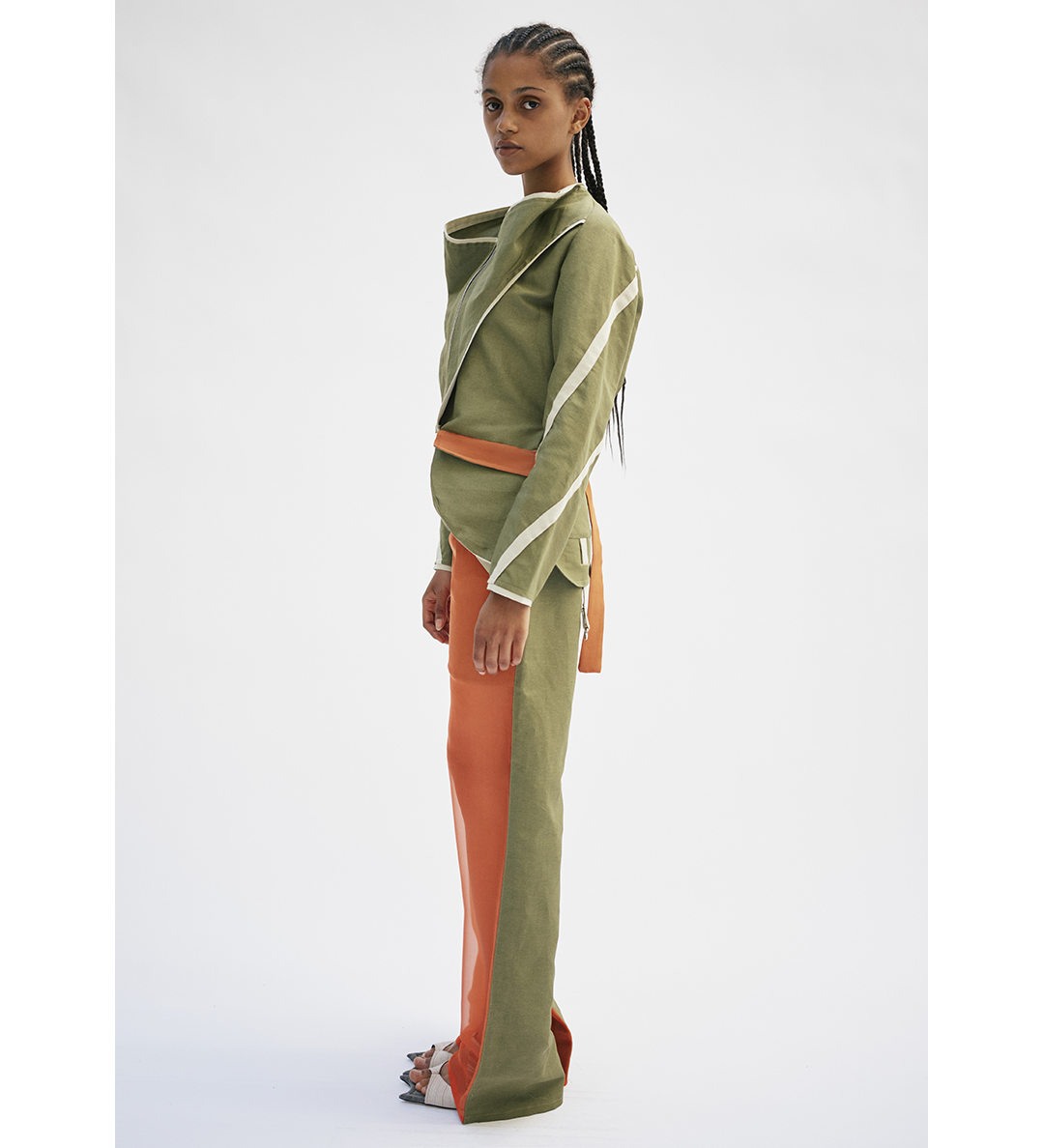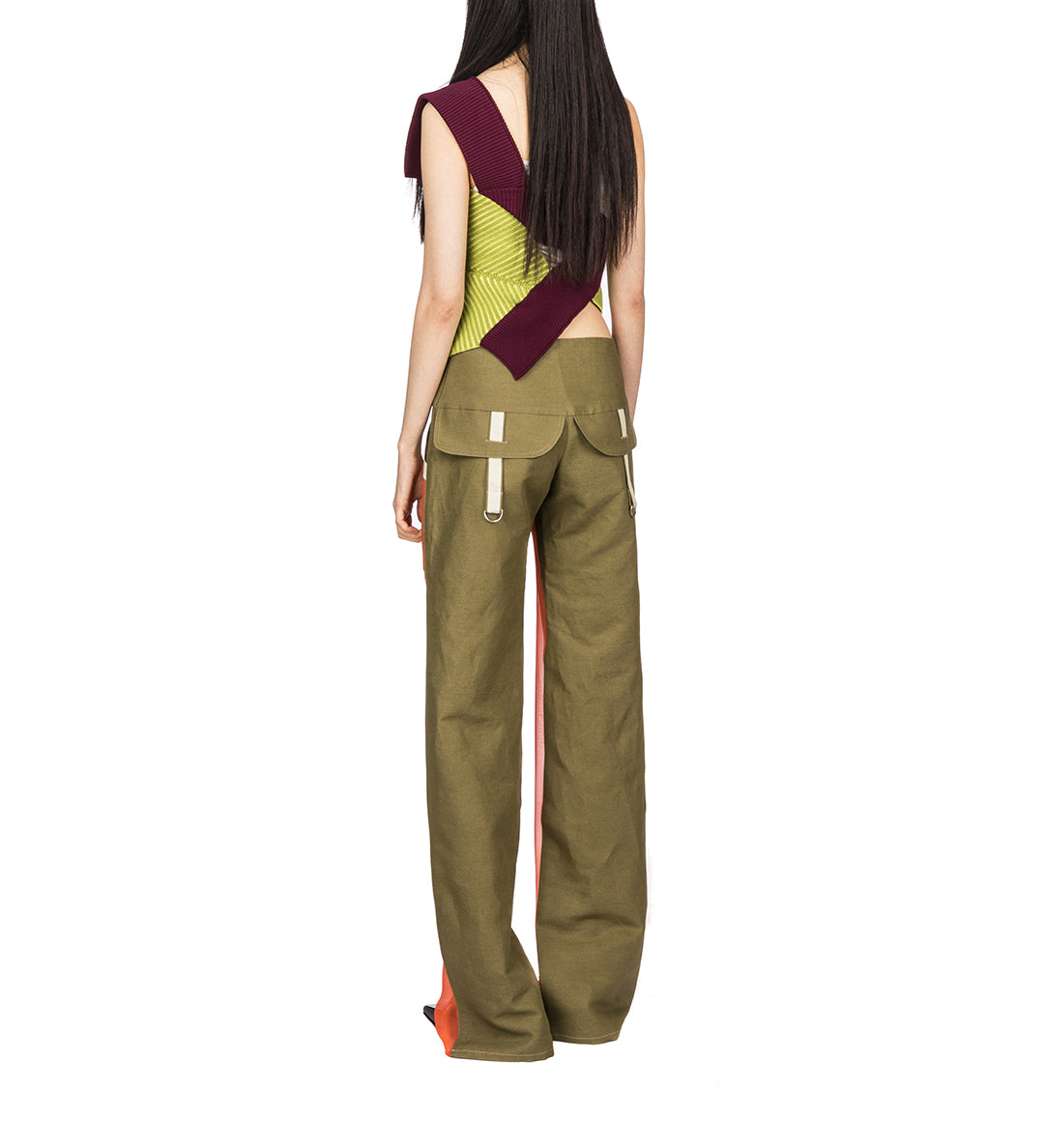 PAULA CANOVAS DEL VAS ARC CHIFFON TROUSERS KHAKI & ORANGE