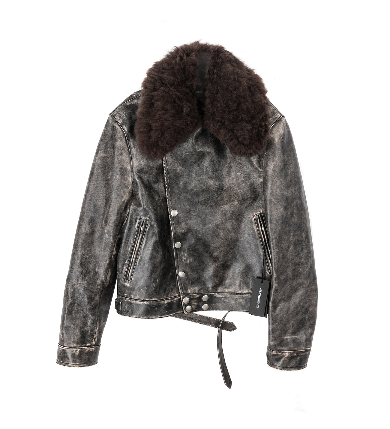 ANN DEMEULEMEESTER BINUS PERFECTO WITH DETACHABLE SHEARLING COLLAR BLACK/NUDE