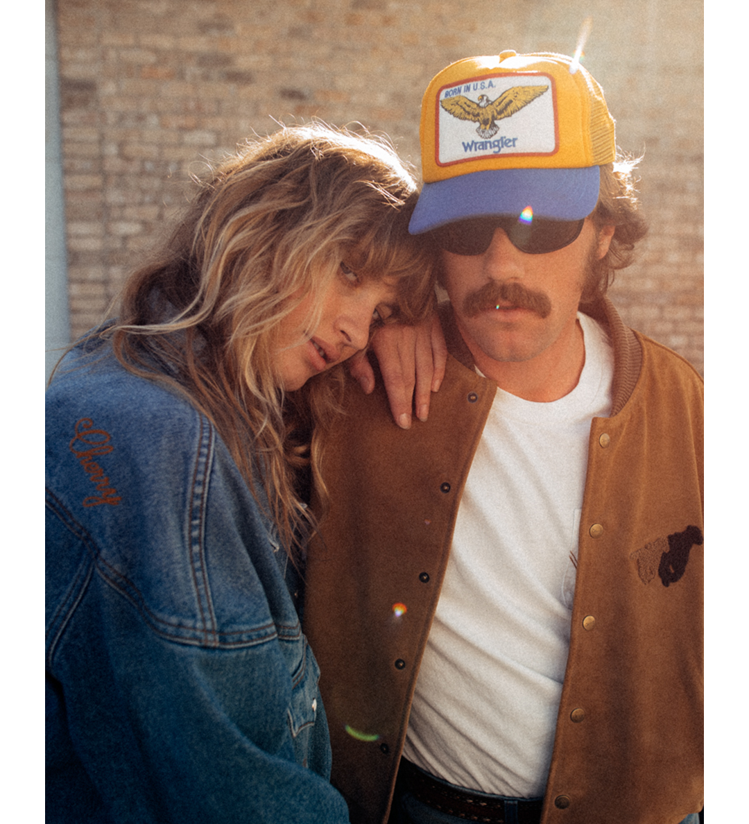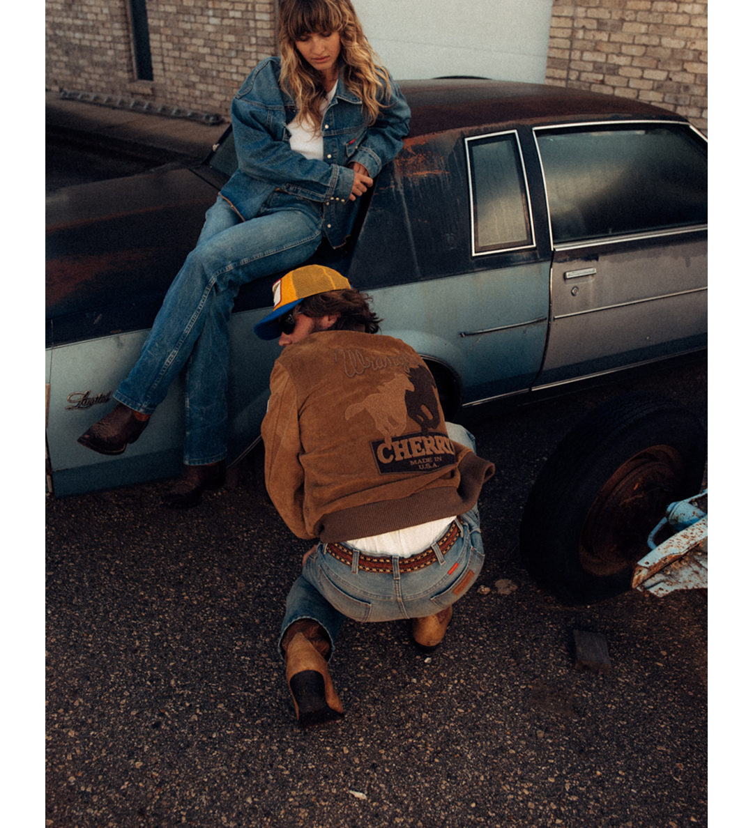 CHERRY LOS ANGELES X WRANGLER SUEDE VARSITY JACKET TAN
