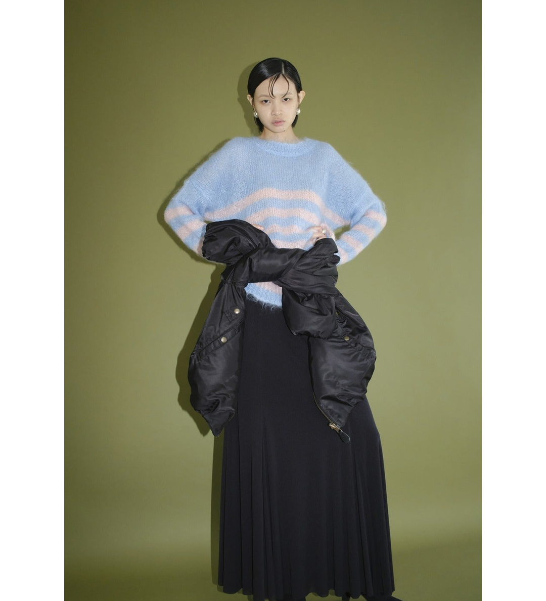 CLANE X FRAGMENT BORDER MOHAIR KNIT TOPS SAX