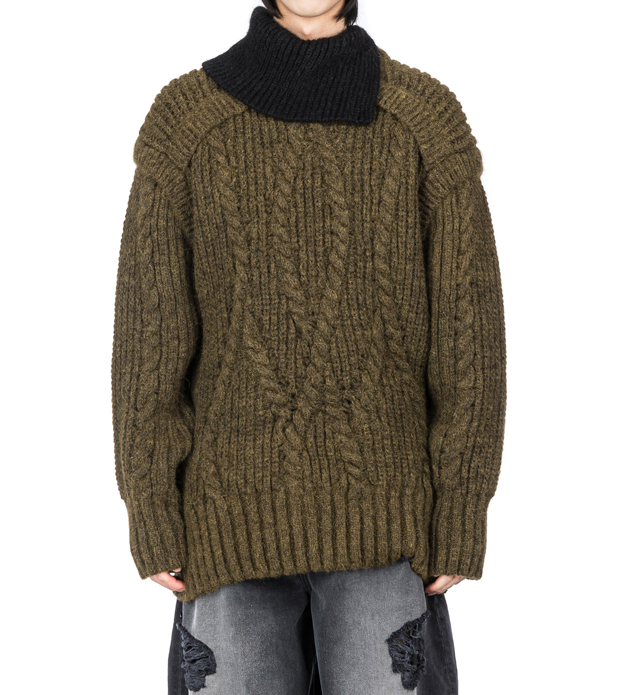 SIMONE ROCHA CONTRAST HIGH NECK CHUNKY KNIT JUMPER OLIVE/BLACK