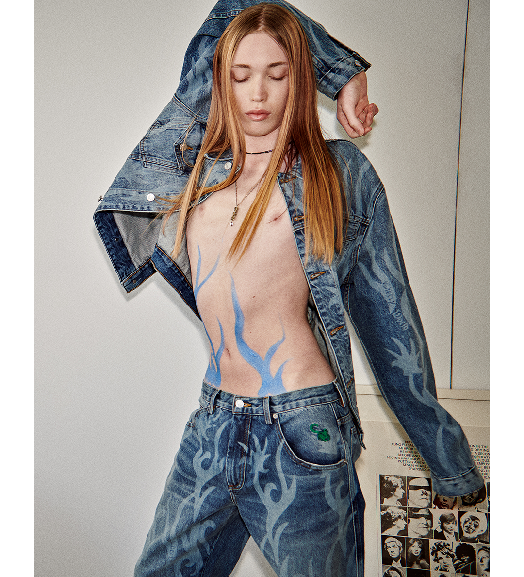DENIM TRUCKER JACKET TRIBAL LASERS