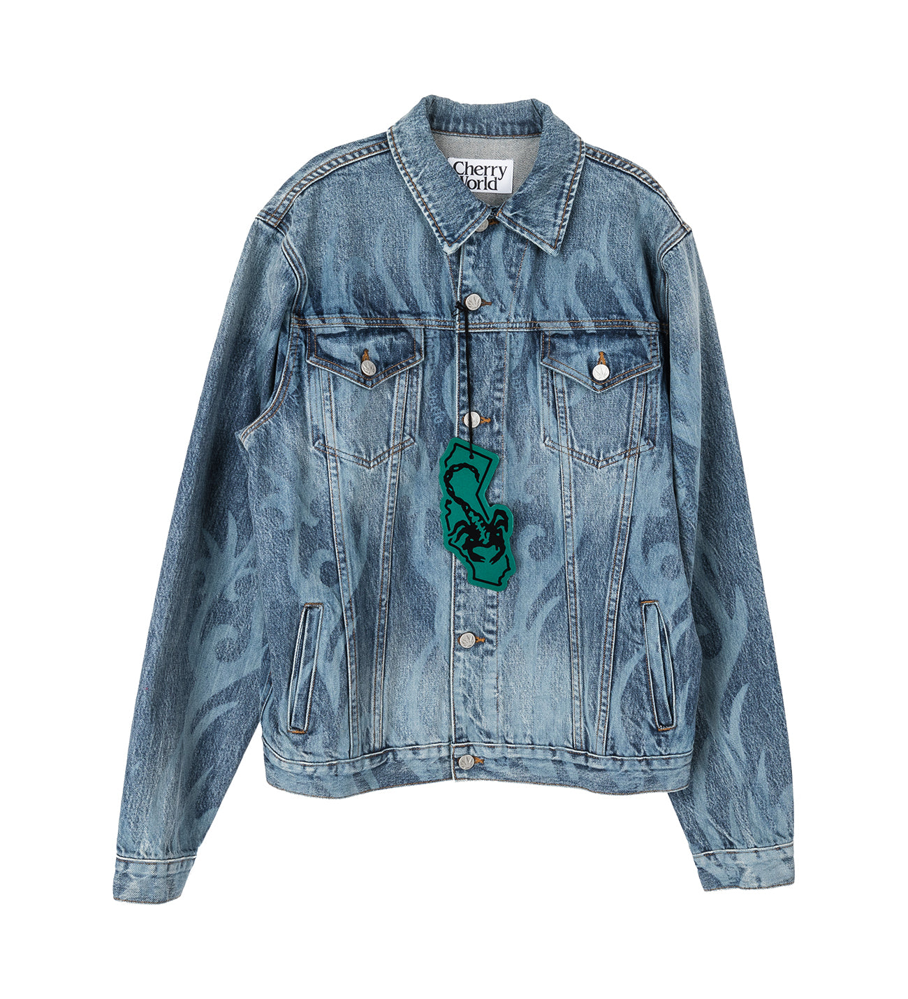 CHERRY WORLD DENIM TRUCKER JACKET TRIBAL LASERS