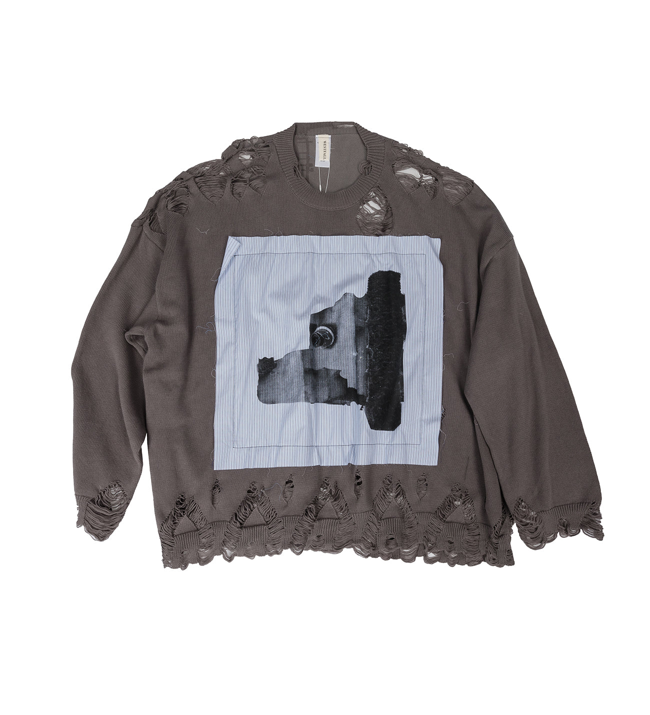 WESTFALL DESTROYED CYBER SNOPPY PATCH SWEATER GRAY