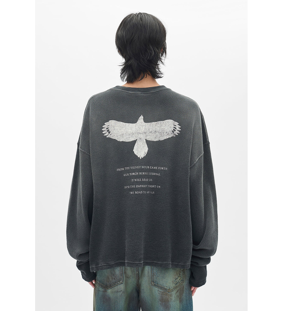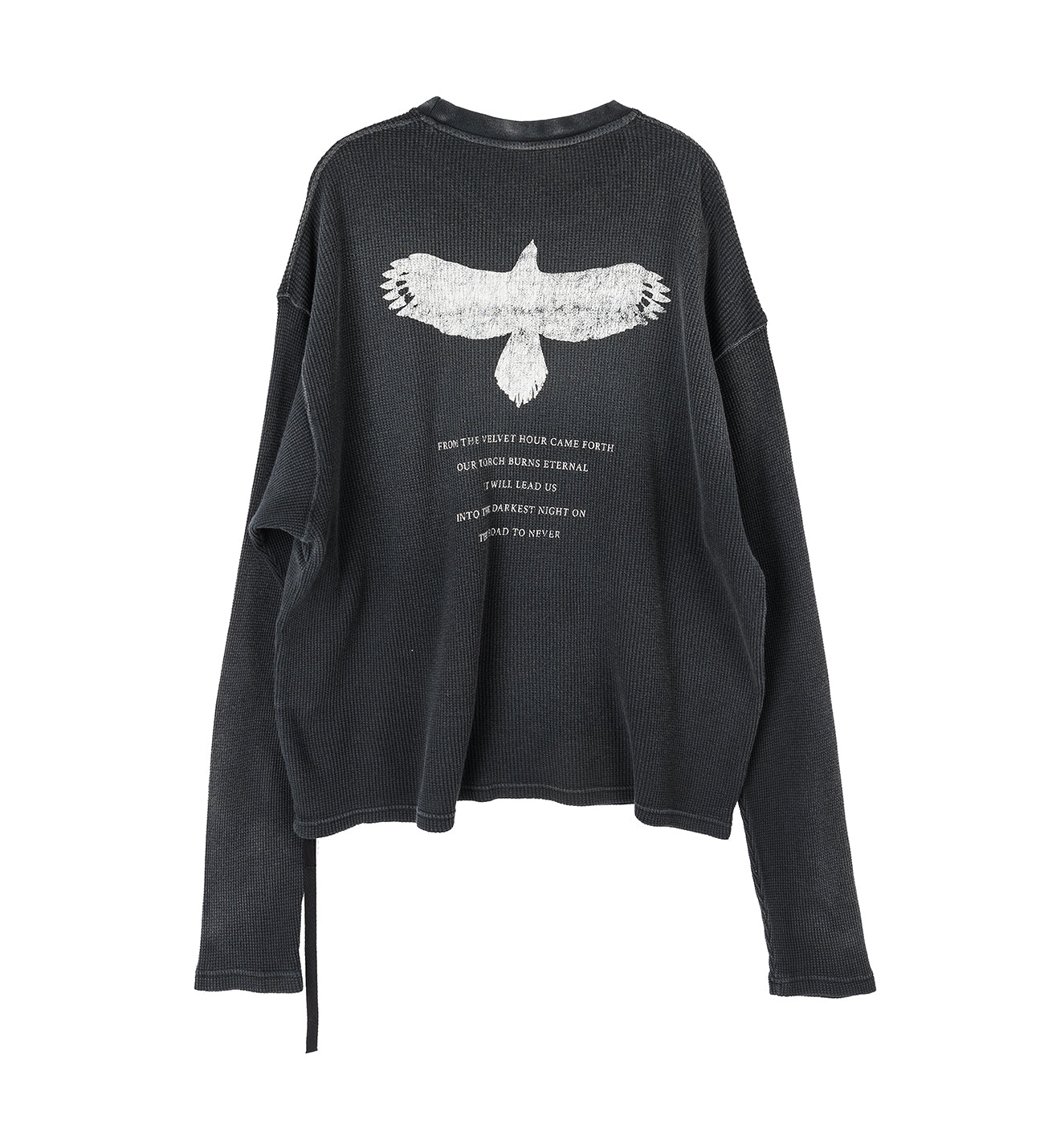 ANN DEMEULEMEESTER EMIL RELAX FIT LONG SLEEVE ETERNAL EAGLE PRINT BOXY T-SHIRT FADED BLACK