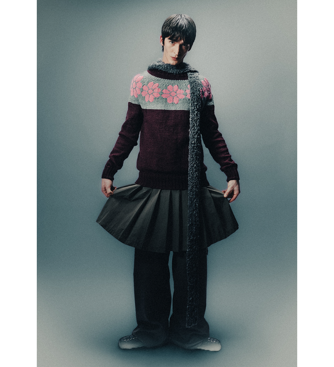 ANDREJ GRONAU HANDKNITTED FAIR ISLE SWEATER WINE/ROSE