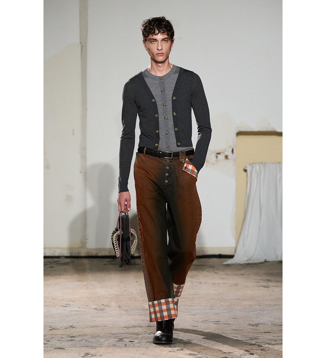 EGON LAB ILLUSION LAYERED CARDIGAN DARK/LIGHT GREY