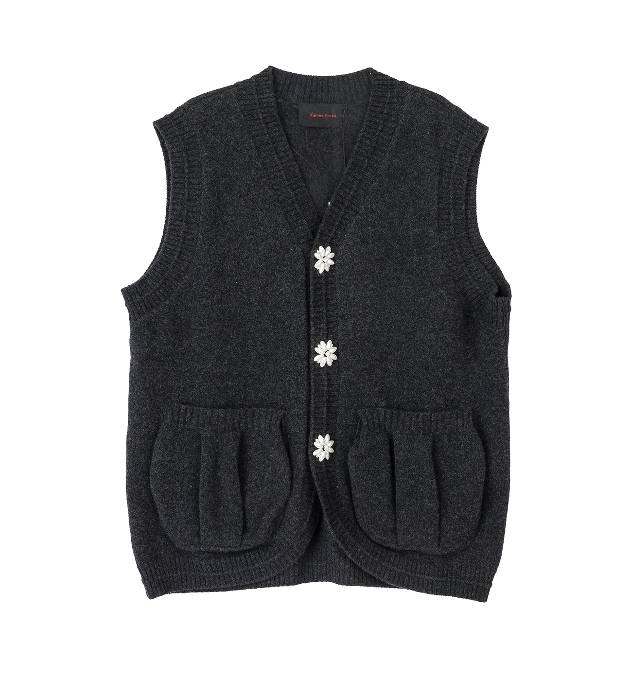 SIMONE ROCHA KNIT VEST W/ PEARL BUTTONS CHARCOAL/PEARL