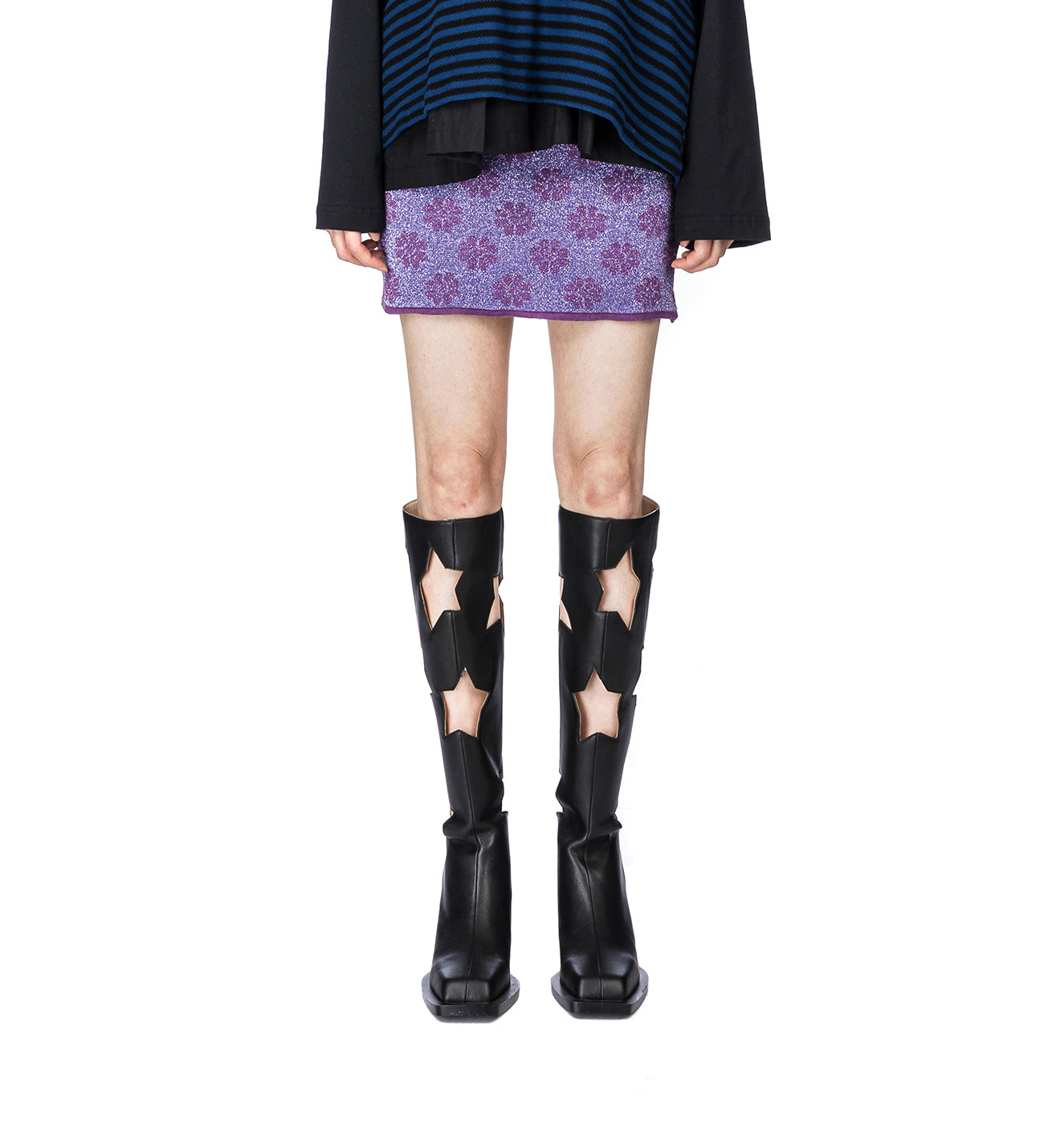 ANDREJ GRONAU KNITTED CLOQUE FLOWER PENCIL SKIRT NAVY