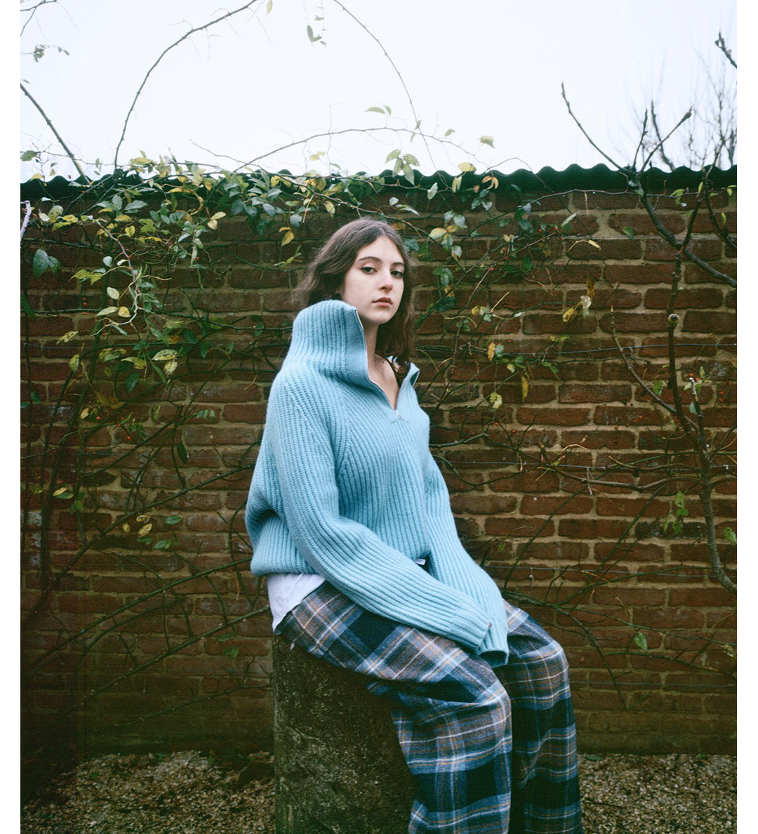 META CAMPANIA COLLECTIVE MICHEL EXAGGERATED RIB CASHMERE HALF ZIP LIGHT TURQOISE