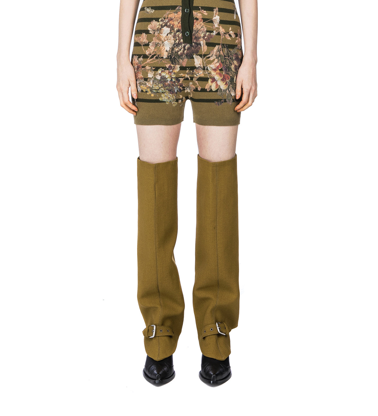 JEAN PAUL GAULTIER OVERSHOE CHAPS WITH BELT DETAIL OLIVE GREEN