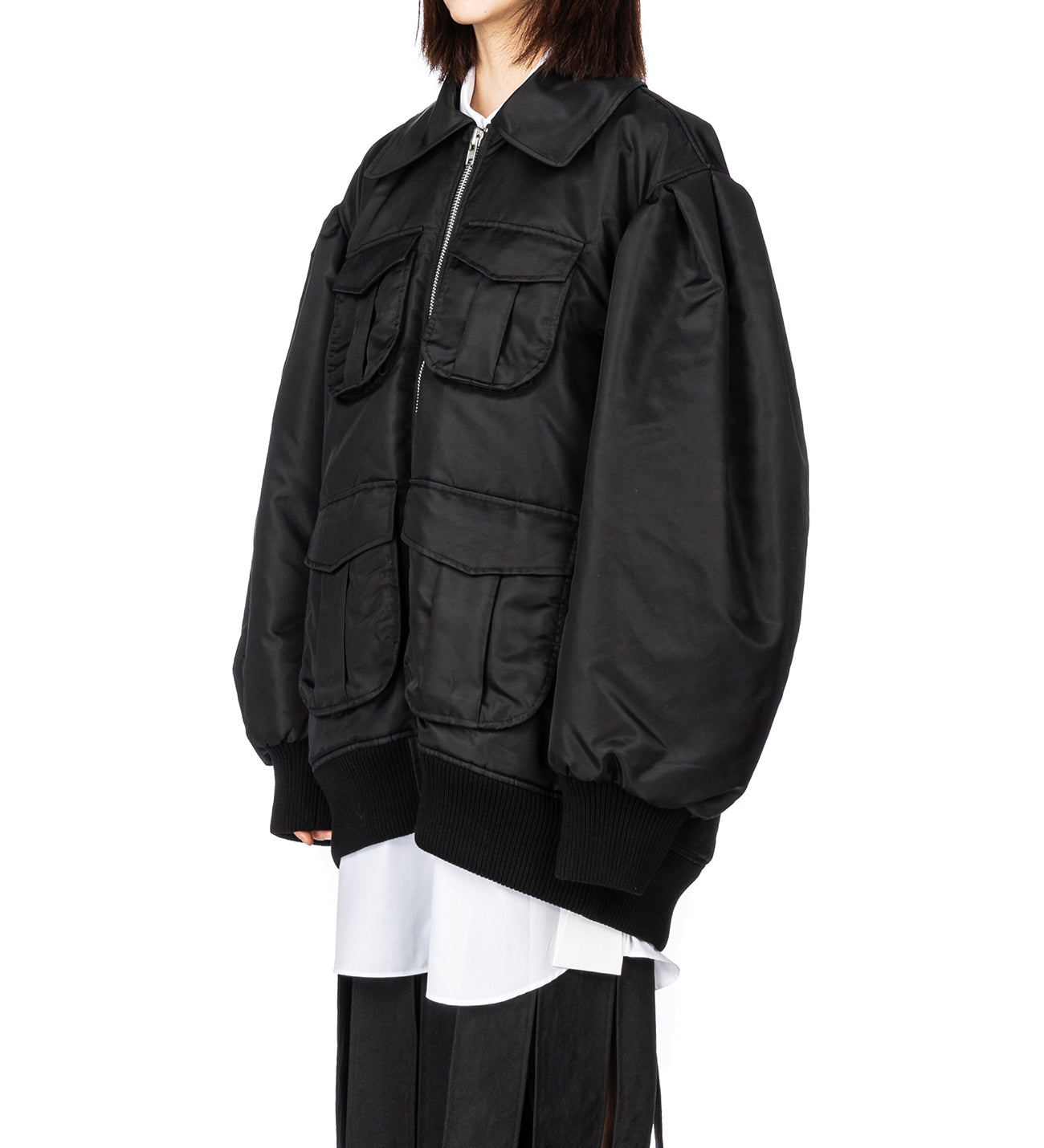 SIMONE ROCHA PUFF SLEEVE MULTI POCKET BOMBER JACKET BLACK