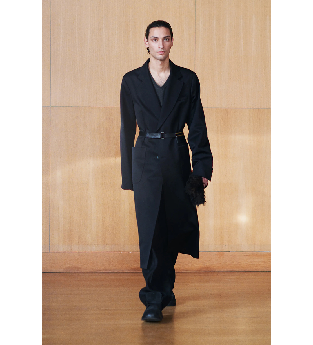 OUR LEGACY ROBE OVERCOAT ONYX BLACK TECH SATEEN