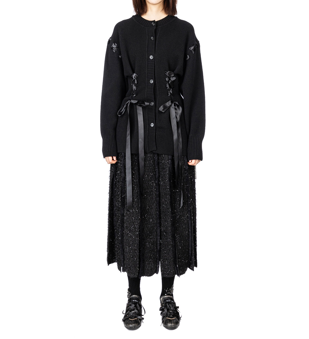 SIMONE ROCHA SCULPTED RIBBON CORSET DETAIL CARDIGAN BLACK
