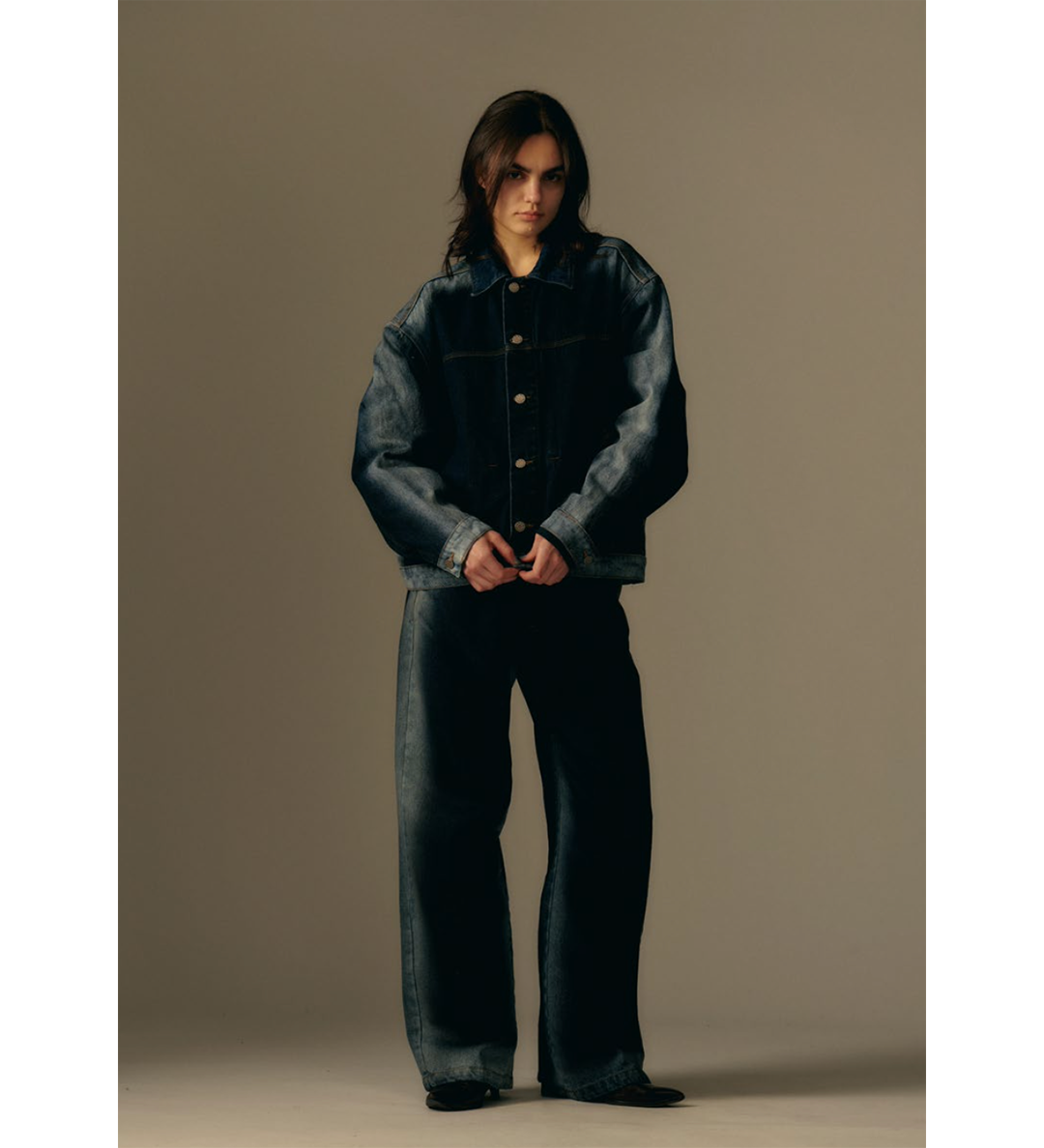 SHADOW WASH BAGGY DENIM PANTS BLUE