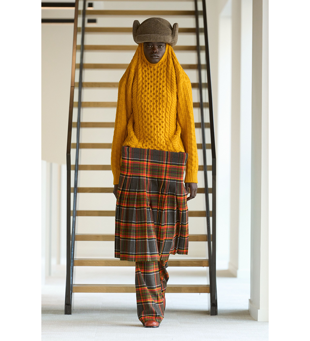 TARTAN FLARE PANTS ORANGE/GREY
