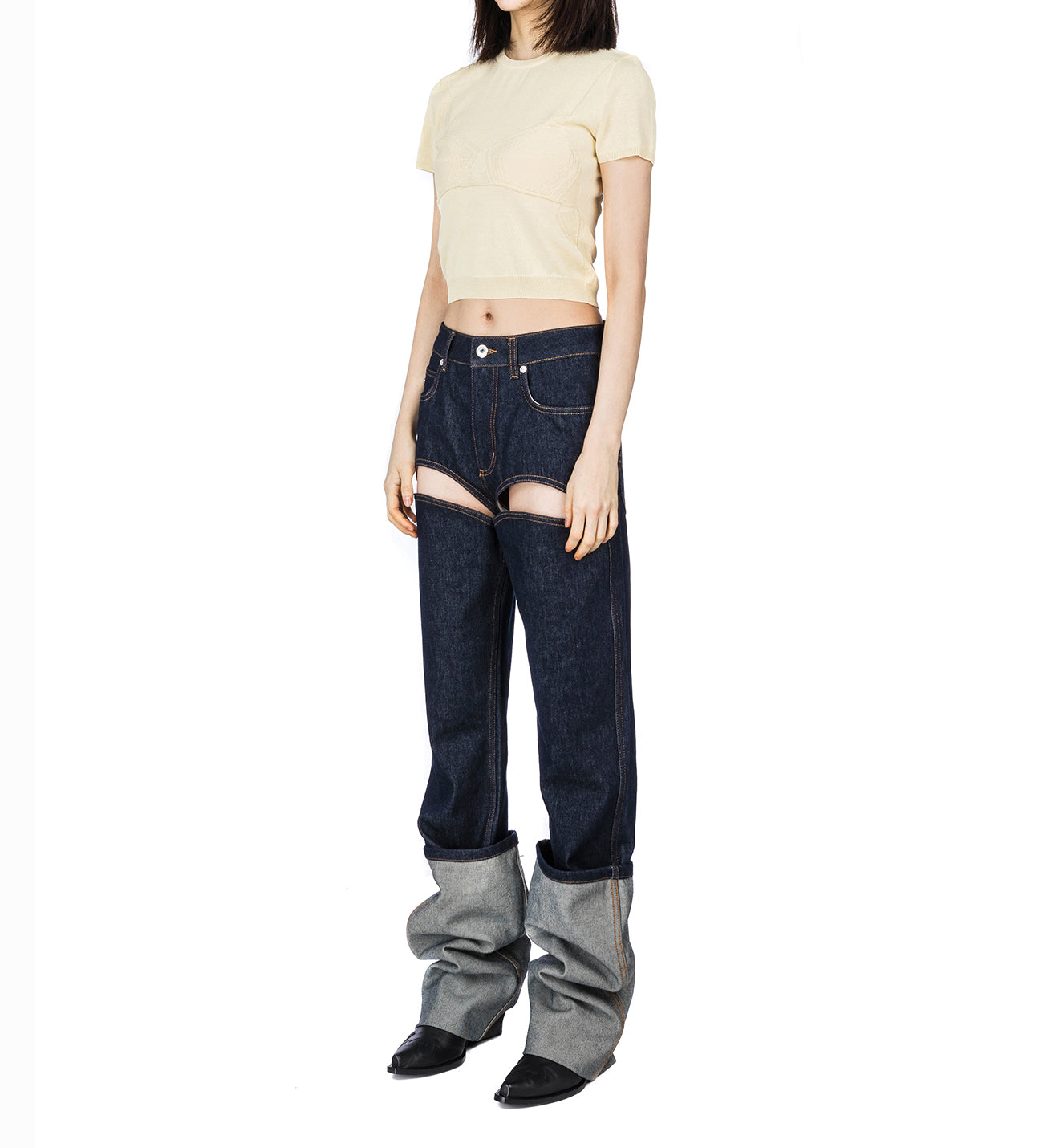 JEAN PAUL GAULTIER TROMPE L'OEIL LINGERIEE SHORT SLEEVES PULLOVER VANILLA